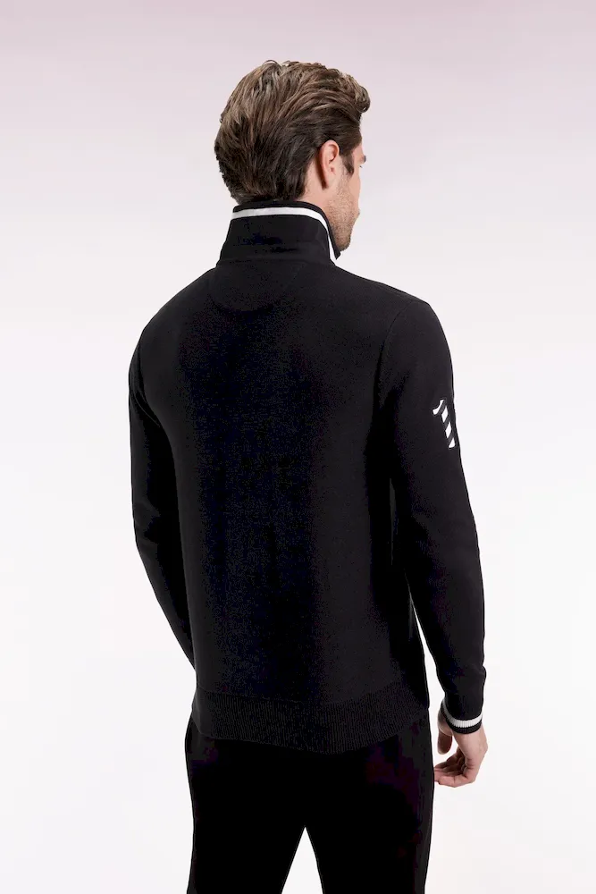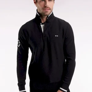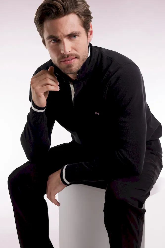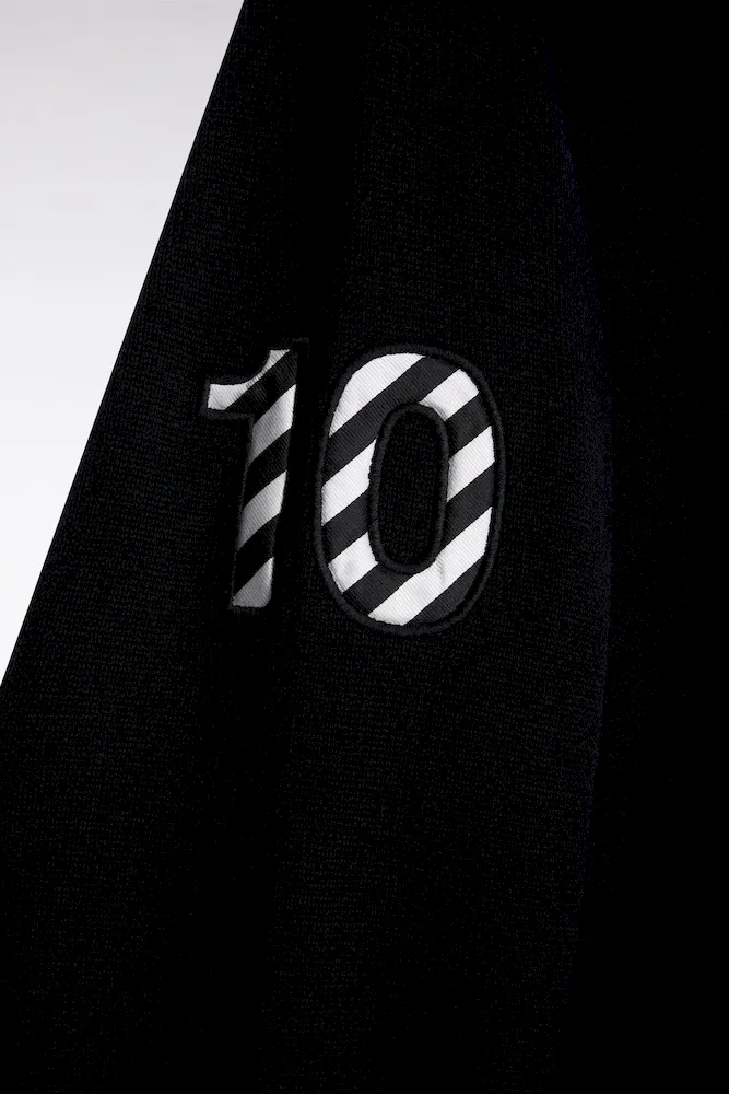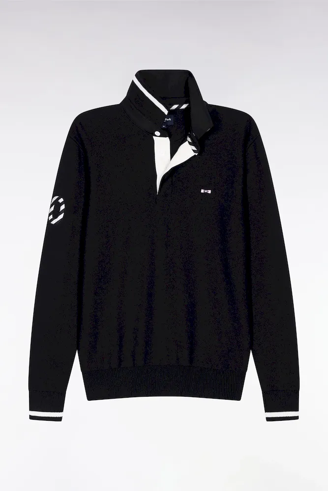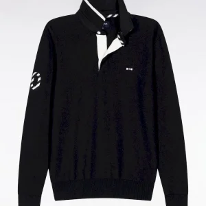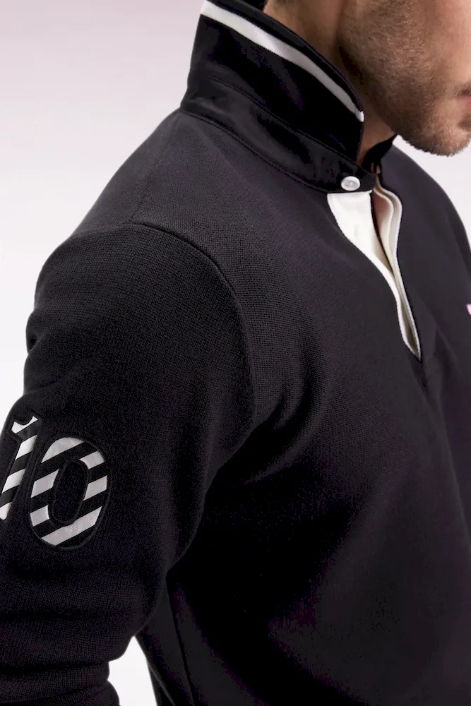 Hommage assumé à l’univers rugby, ce pull à col maillot joue sur les codes sport-chic chers à Eden Park. Dessous de col tricoté souligné d’un liseré, construction soignée avec bande de propreté en tissu cravate, rappel de sa broderie 10 sur la manche : chaque détail reflète le savoir-faire de la maison et l’amour porté au rugby. Ce pull présente une alternance de points de tricotage sur le corps et les manches pour une silhouette graphique et dynamique