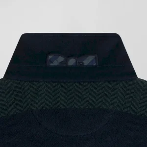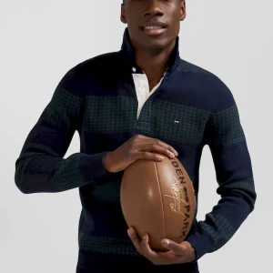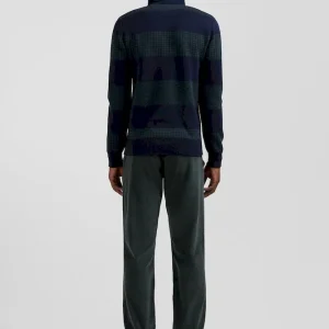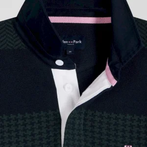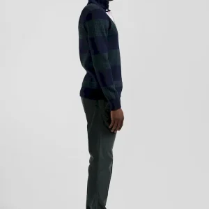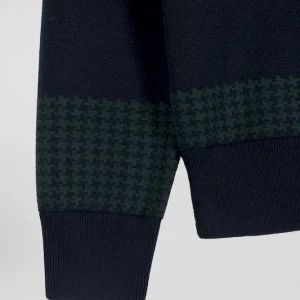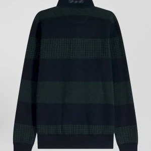 Pull col maillot en coton vert cerclé coupe Regular jacquard pied-de-poule
