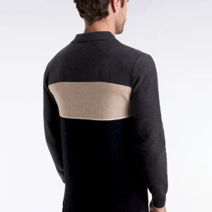 Ce pull col maillot mêle jeux de textures et finitions soignées. Disponible en deux coloris aux effets de contraste idéaux pour une allure sport-chic, il associe avec style plusieurs type de points, témoignant du savoir-faire de notre maison française dans le travail de la maille