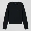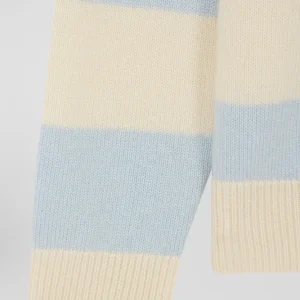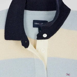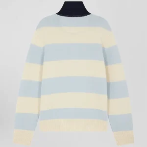 Pull col polo en laine et cachemire rayé bleu et écru