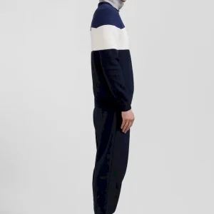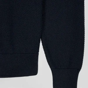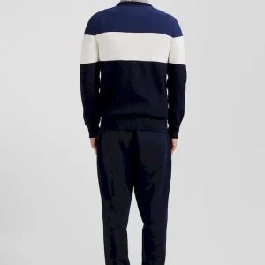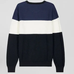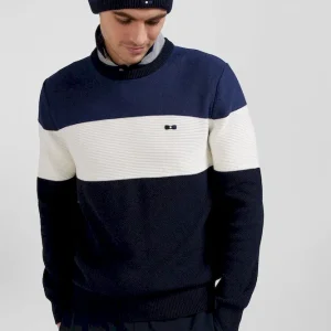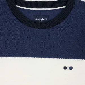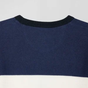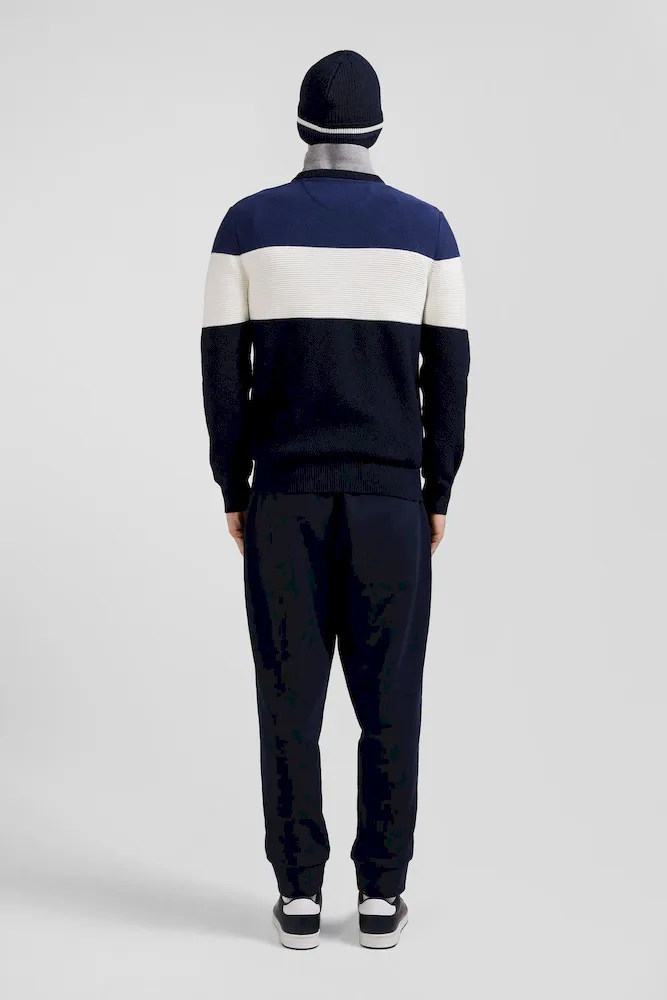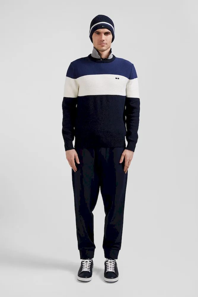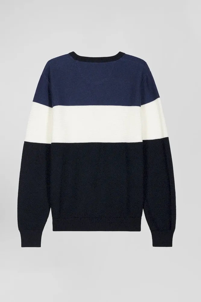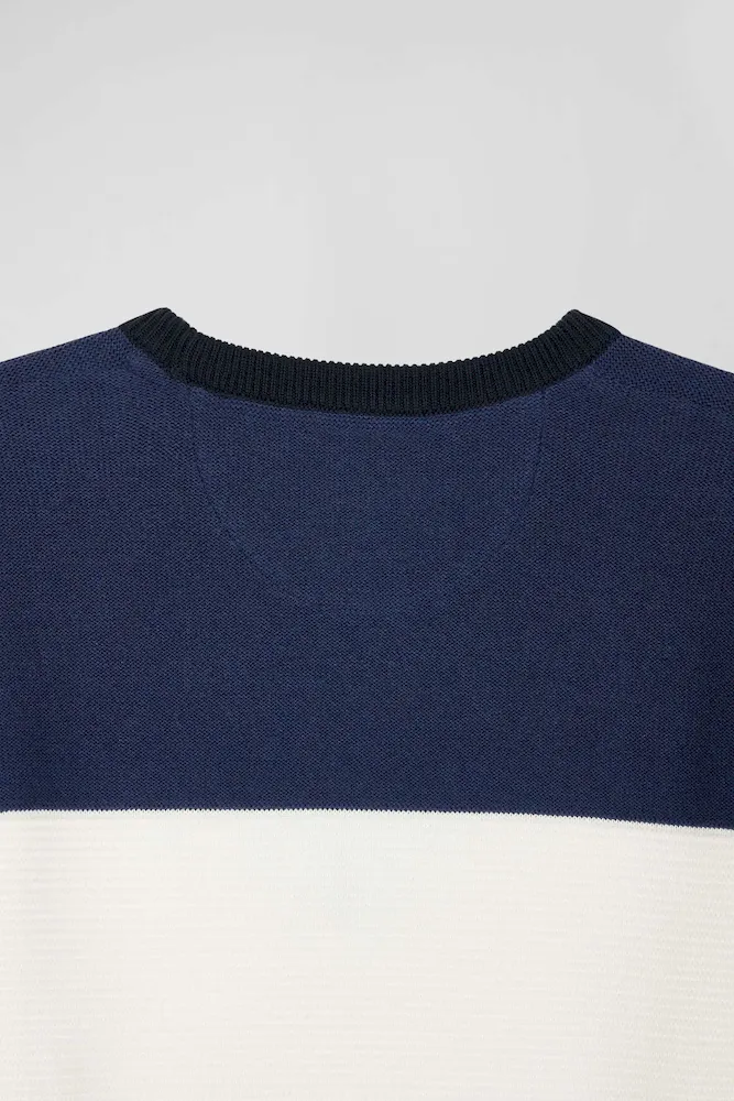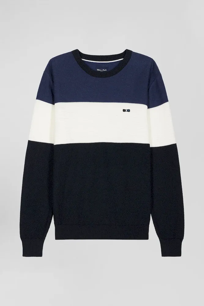 Pull col rond en coton bleu marine et bleu à jeux de maille coupe Regular