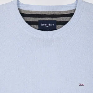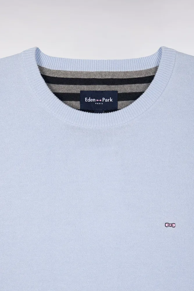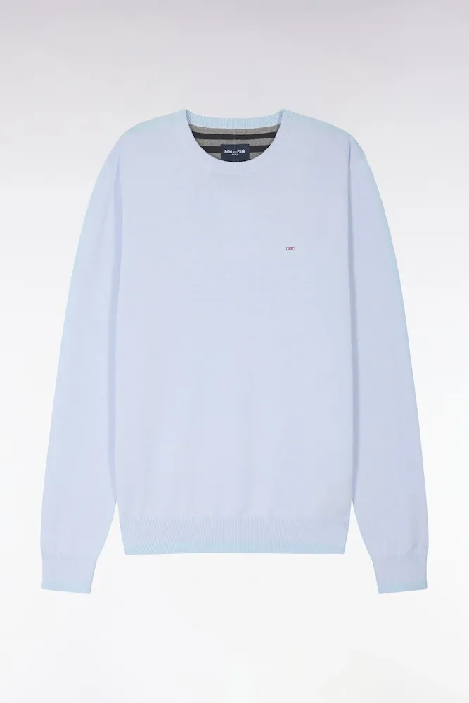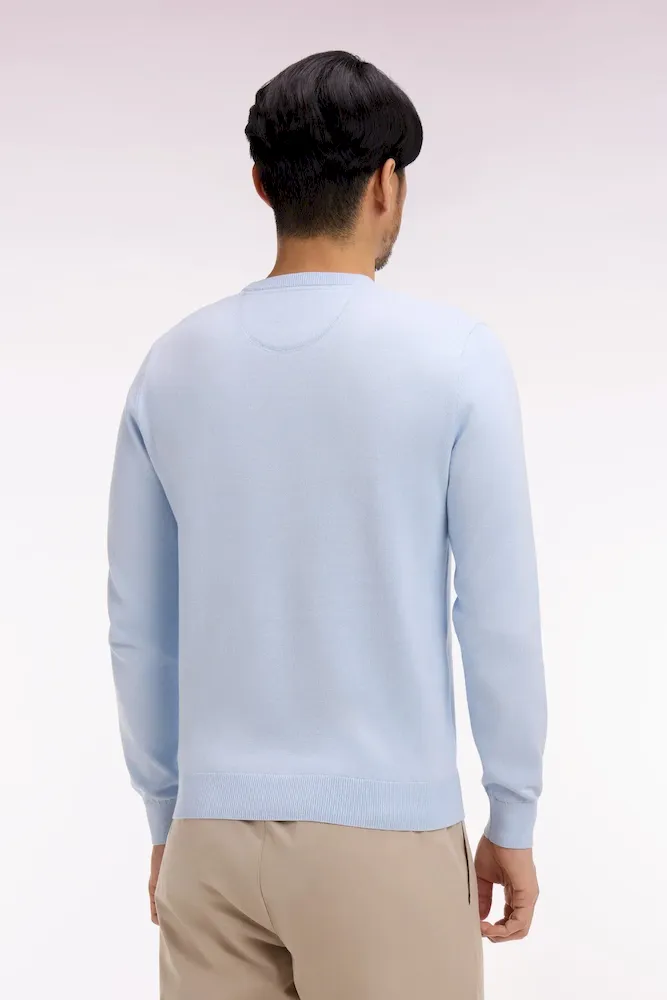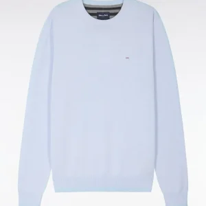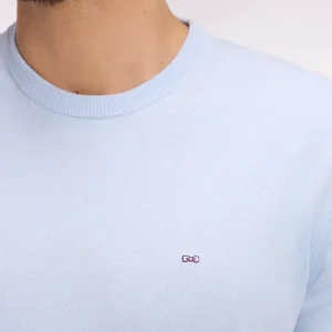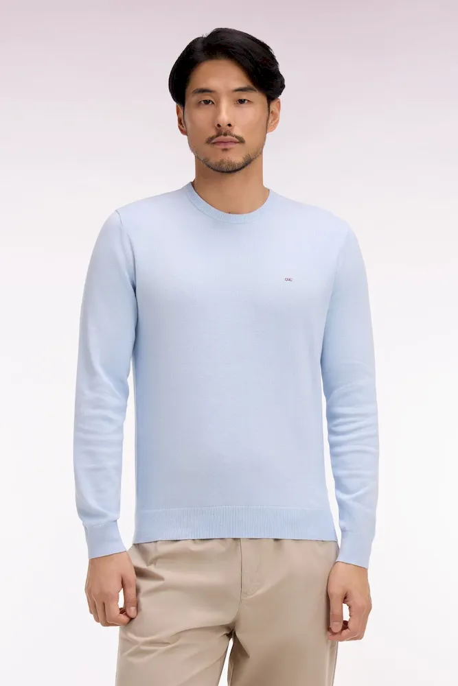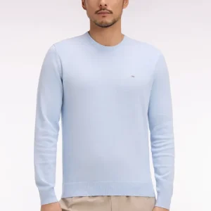 Ce pull col rond tricoté en coton pur séduit par son alliance d’élégance et de confort. Léger et respirant, ce modèle est parfait pour l’entrée de saison, s’associant aussi bien à un chino qu’à un jean dans son coloris ciel ou vert doux. Détail discret emblématique du vestiaire de la Maison, sa Demi-lune intérieure s’habille de rayures rugby.