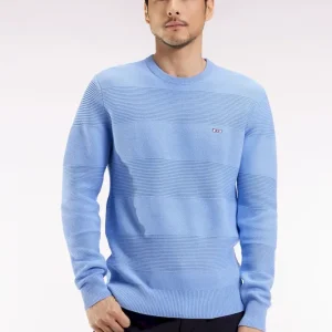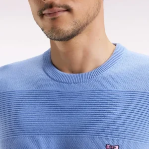 Avec son tricotage alternant points côtes et nid d’abeille, ce pull homme à col rond en coton pur revisite les rayures rugby dans une version subtilement texturée hommage au savoir-faire des ateliers de la maison. Coupe droite, broderie nœud papillon et finitions soignées, comme sa demi-lune rayée, en font un essentiel du vestiaire Eden Park : une synthèse chic et intemporelle de notre héritage sportif et de notre sens French Flair d’élégance masculine. Ce modèle vous est proposé dans 4 coloris.