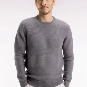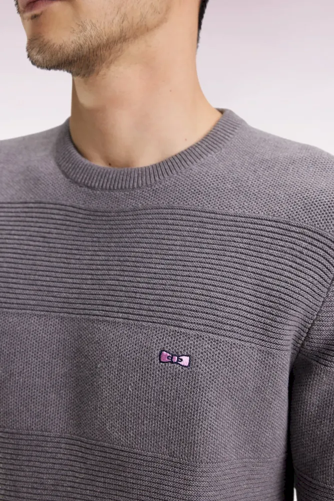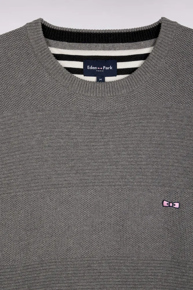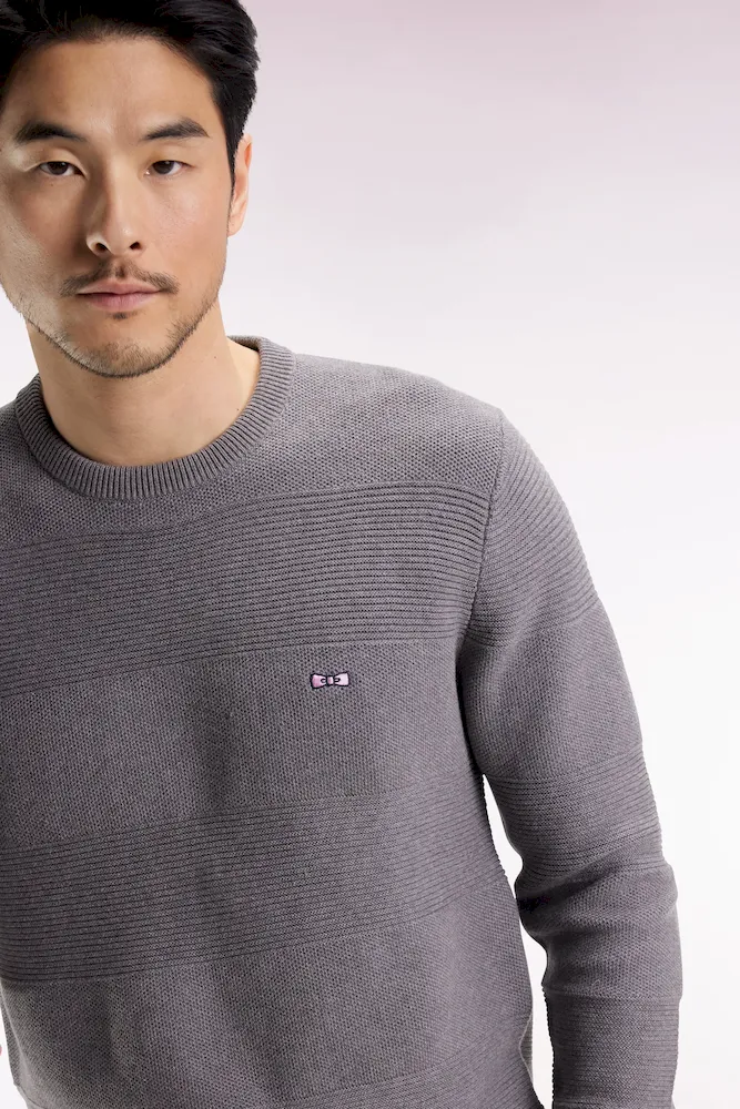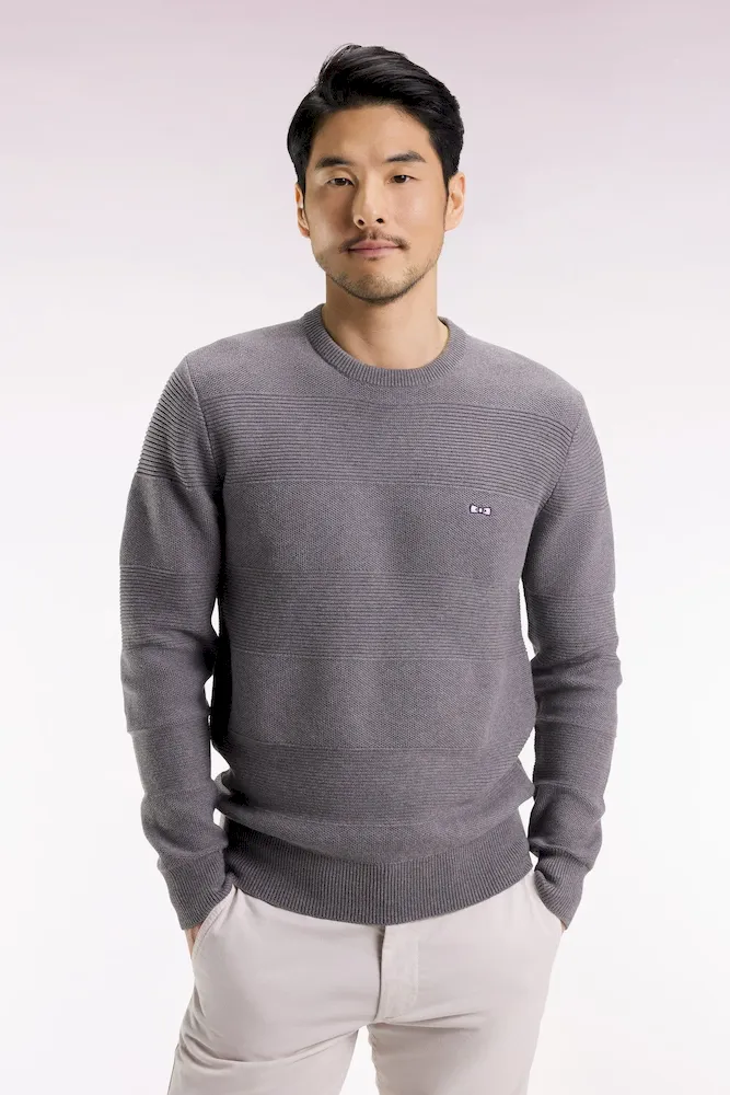 Avec son tricotage alternant points côtes et nid d’abeille, ce pull homme à col rond en coton pur revisite les rayures rugby dans une version subtilement texturée hommage au savoir-faire des ateliers de la maison. Coupe droite, broderie nœud papillon et finitions soignées, comme sa demi-lune rayée, en font un essentiel du vestiaire Eden Park : une synthèse chic et intemporelle de notre héritage sportif et de notre sens French Flair d’élégance masculine. Ce modèle vous est proposé dans 4 coloris