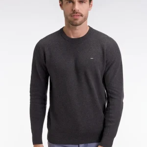 Pull col rond en coton nid d’abeille gris foncé