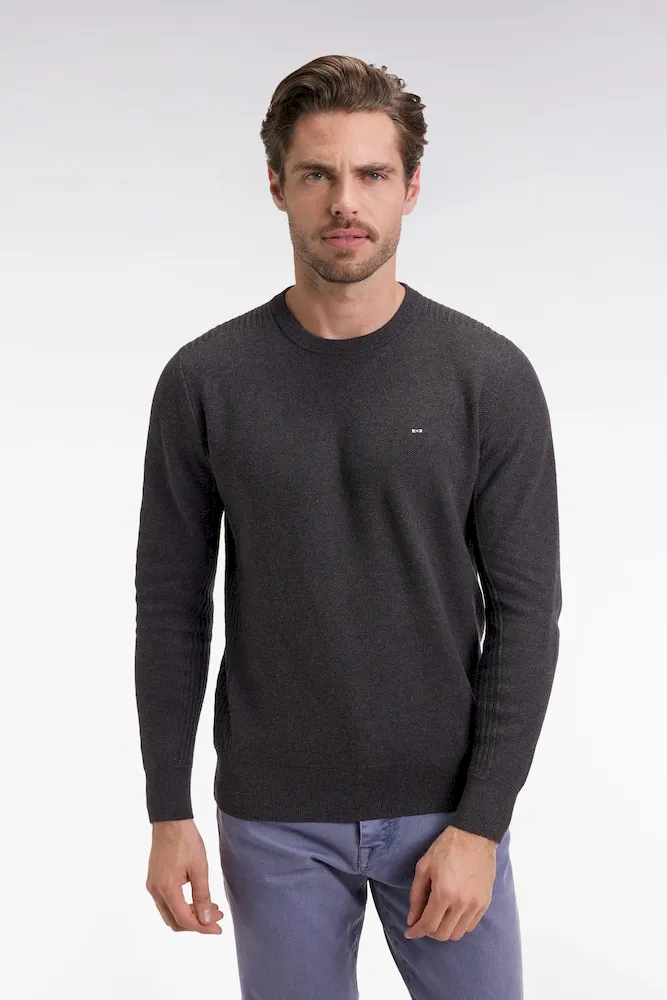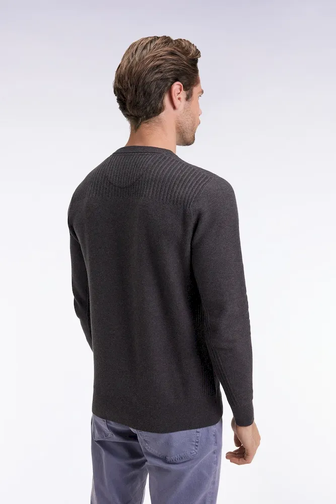 Pull col rond en coton nid d'abeille gris foncé