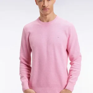 Pull col rond en coton nid d'abeille rose
