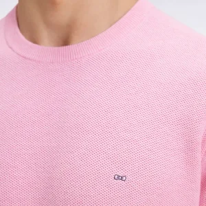 Pull col rond en coton nid d’abeille rose
