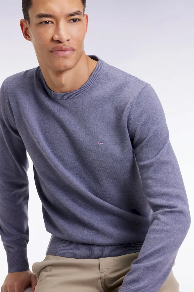 Ce pull à col rond joue la carte de l’intemporalité avec sa coupe droite et son tricot en laine et coton mélangés. Une broderie nœud papillon sur la poitrine et une demi-lune intérieur à rayures rugby signe discrètement son appartenance au vestiaire Eden Park. Facile à associer à une chemise ou à un T-shirt, ce pull décliné dans une riche palette de coloris accompagne toutes vos silhouettes de saison