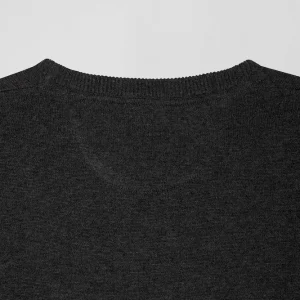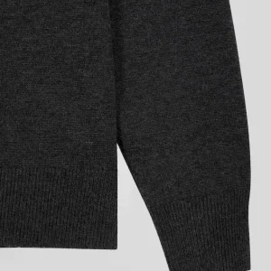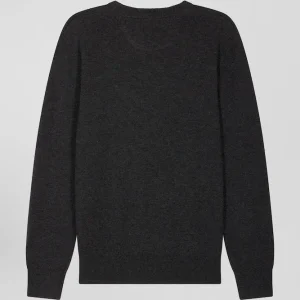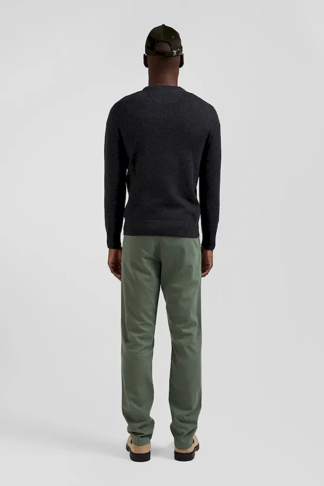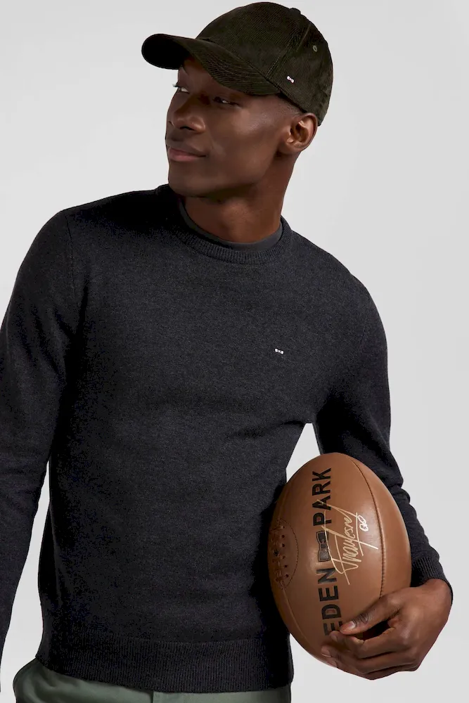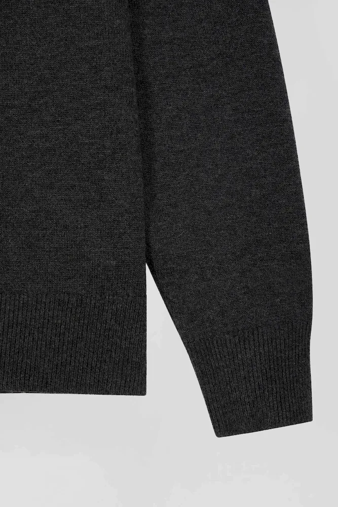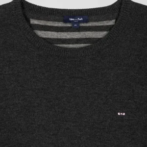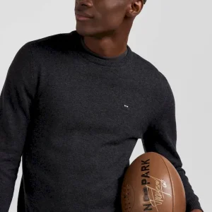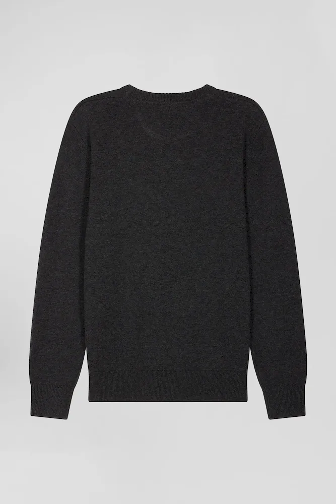 Pull col rond en laine et coton gris anthracite coupe Regular