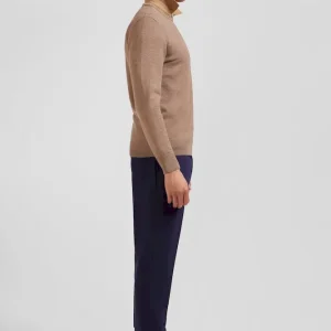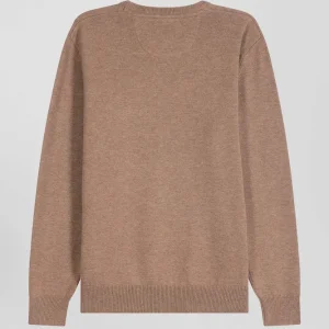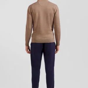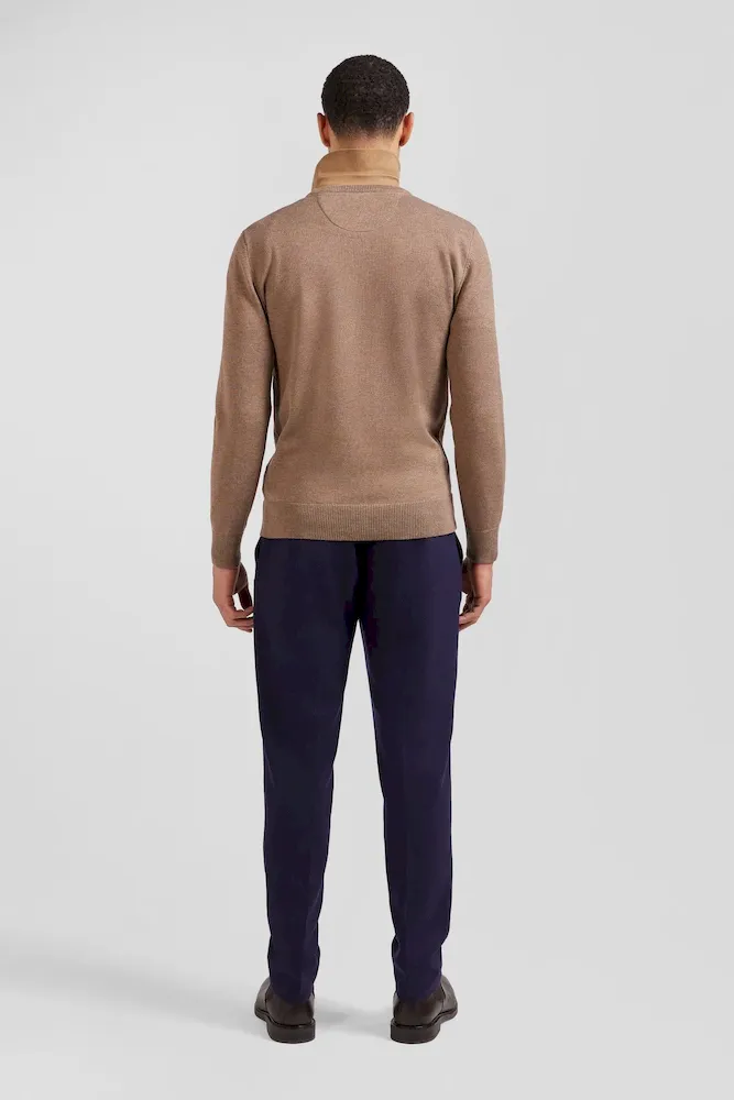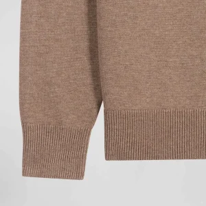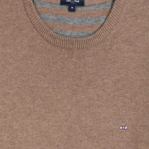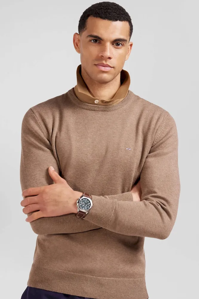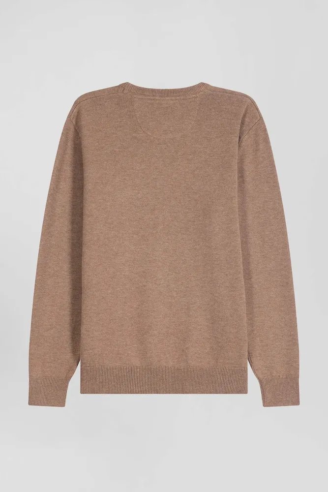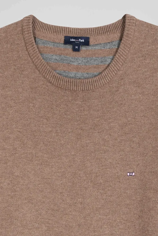 Pull col rond en laine et coton marron coupe Regular
