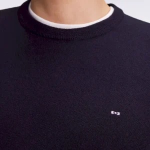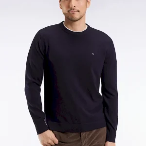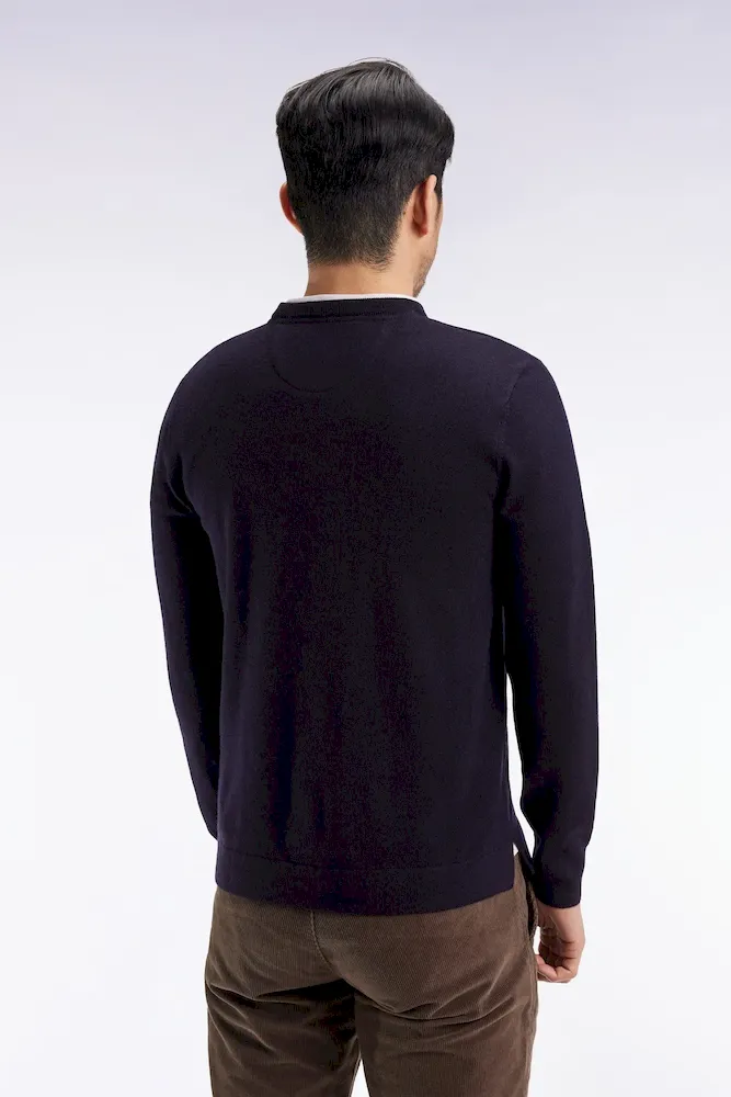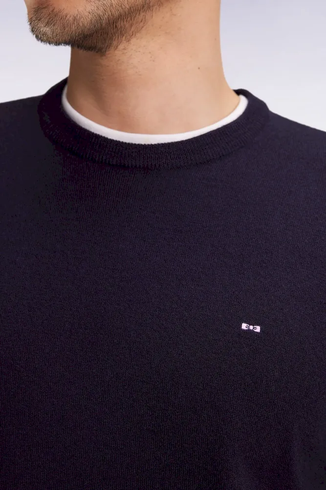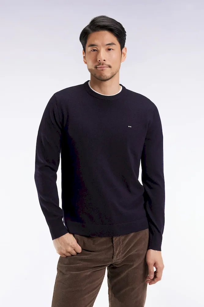 Pull col rond en laine mérinos marine