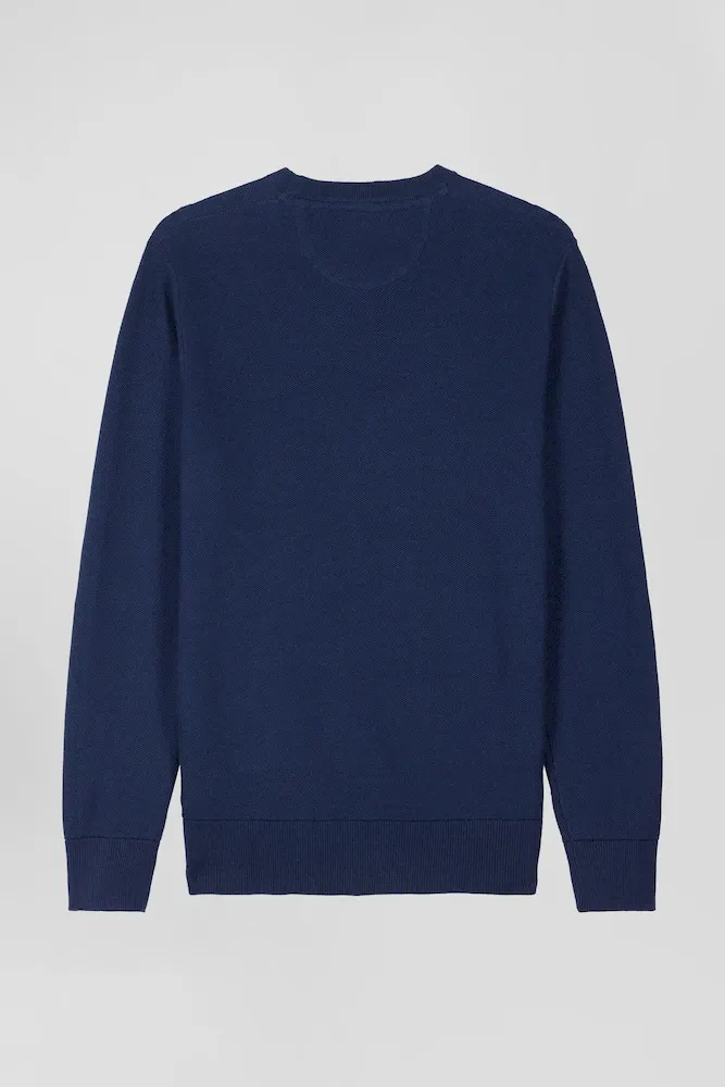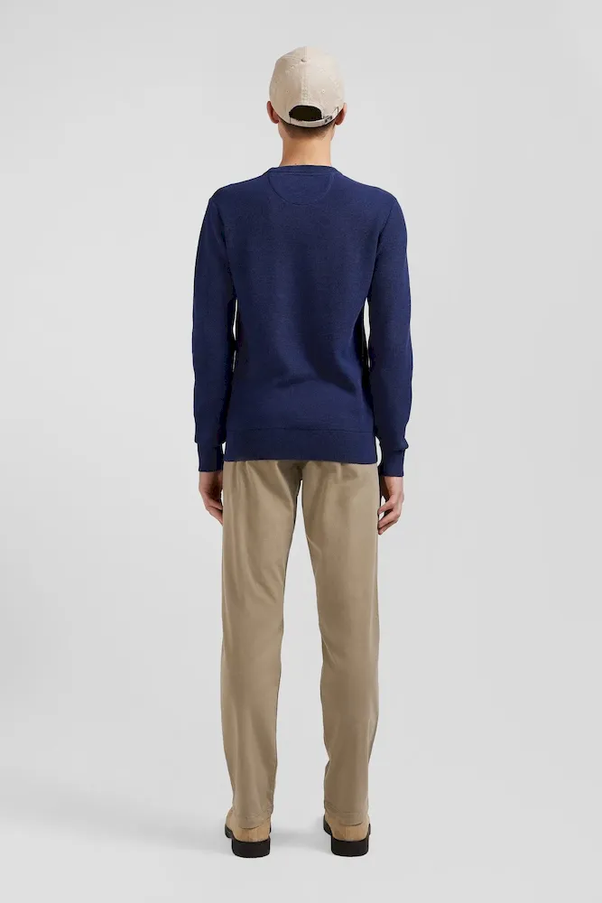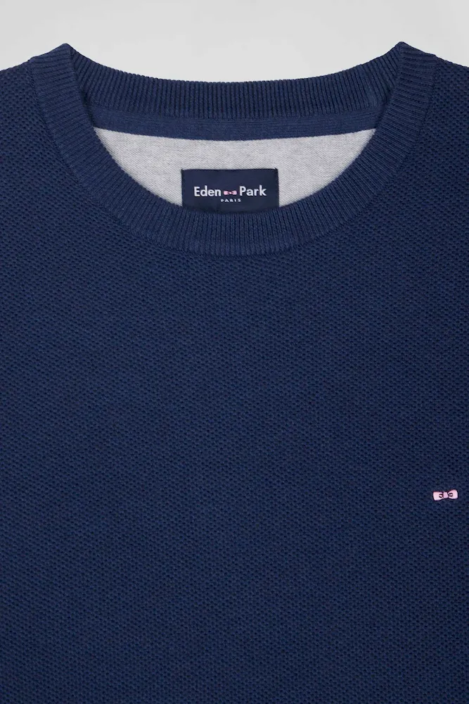 Ce pull col rond pour homme incarne toute l’élégance décontractée d’Eden Park dont il arbore fièrement la broderie nœud papillon. Conçu en coton pur, ce pull uni décliné dans plusieurs coloris promet douceur et confort tout au long de la journée.
