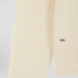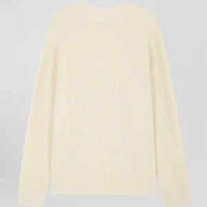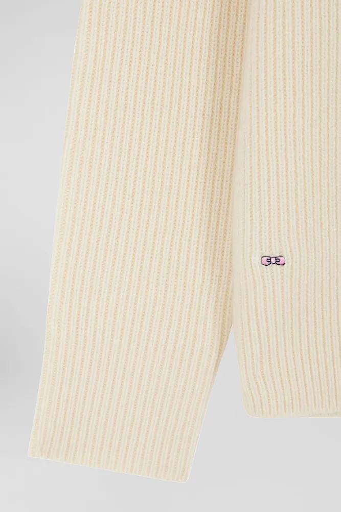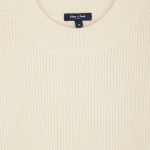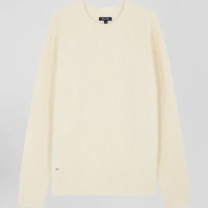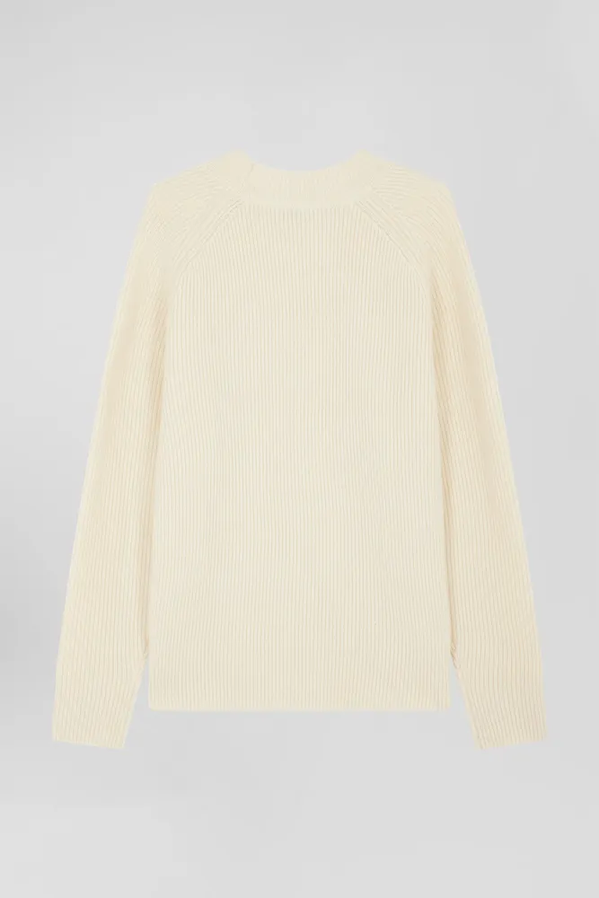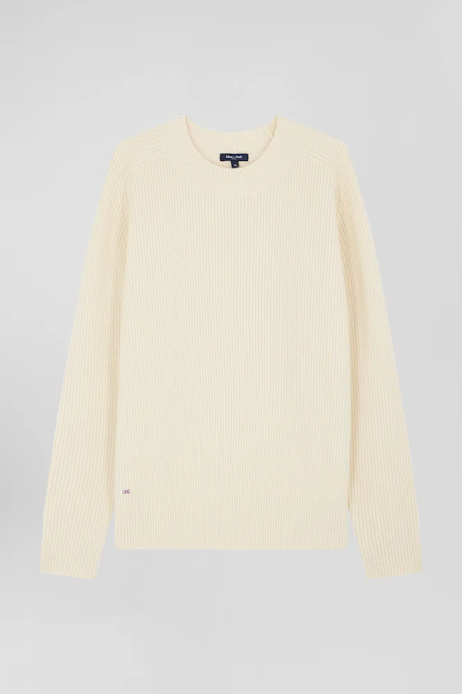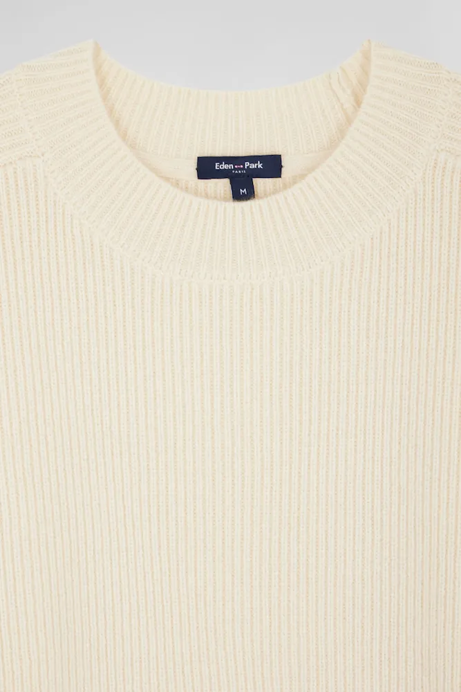 Pull col rond uni en laine et cachemire beige coupe Regular