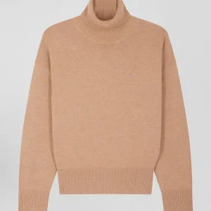 Ce pull col roulé uni, conçu dans un mélange confortable de fibres naturelles associant 55% de laine et 45% de coton, allie chaleur et douceur. Doté de bords-côtes pour une finition soignée et une tenue parfaite, ce pull féminin à la coupe légèrement ample est orné d’une discrète broderie nœud papillon, signature d’Eden Park. Disponible en six coloris intemporels, ce pull à col roulé doux est idéal pour enrichir votre garde-robe hivernale avec élégance et simplicité.
