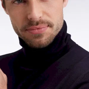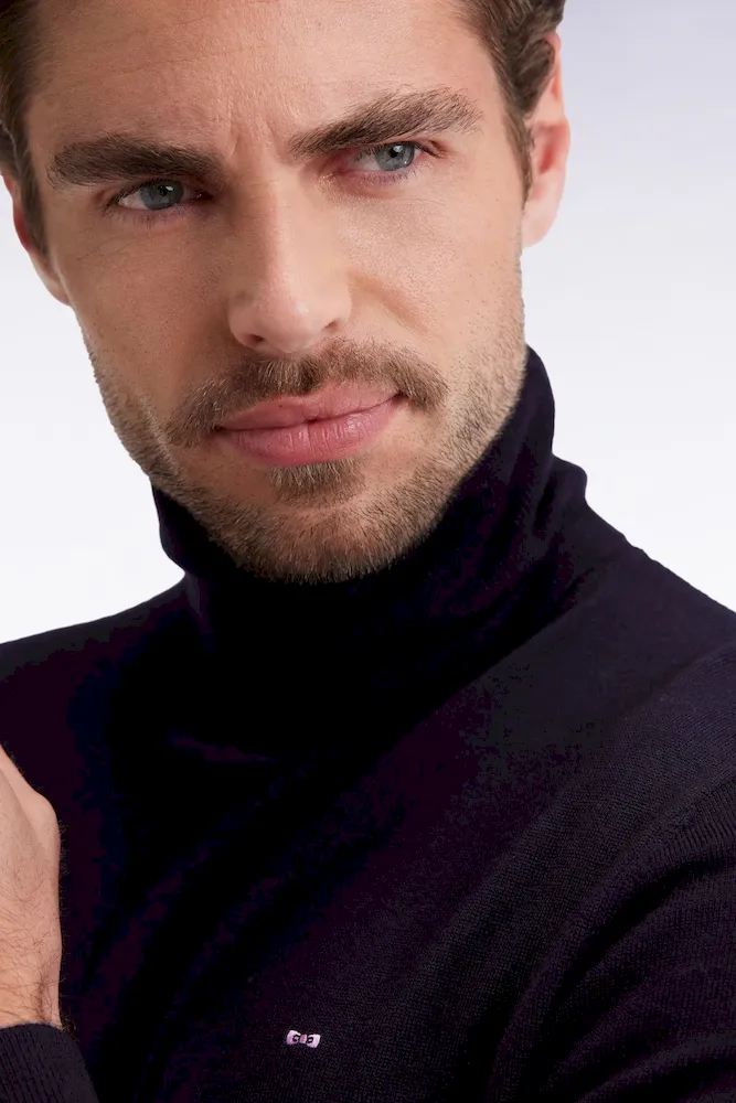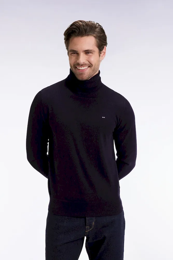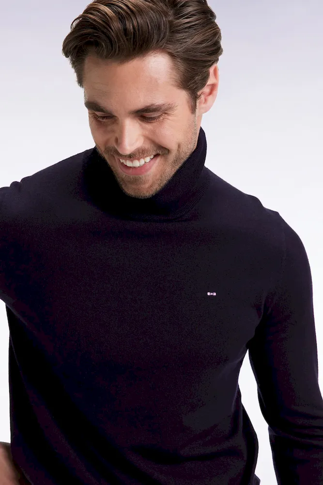 Pull col roulé en laine mérinos marine