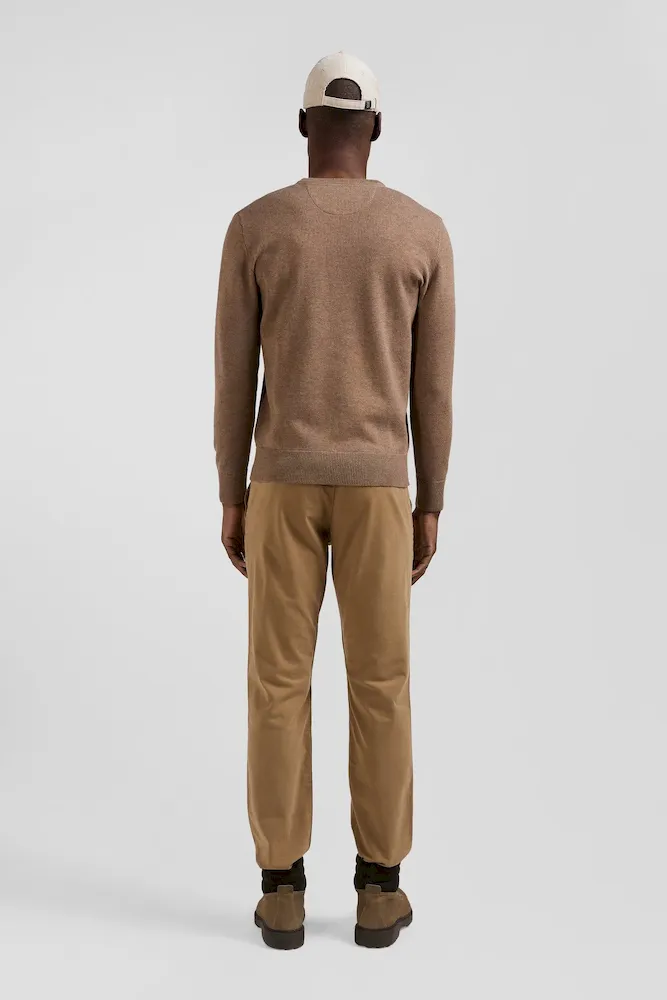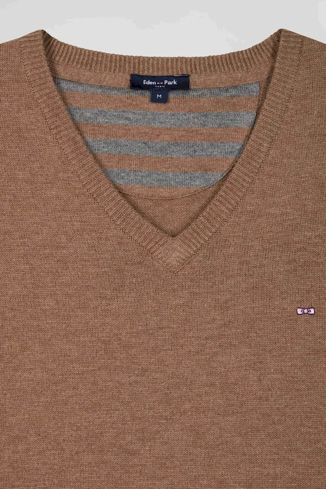 Découvrez la douceur d’un tricot jersey associant la chaleur de la laine et la légèreté du coton dans ce pull col V uni. Chaque teinte est sublimée par une demi-lune intérieure rayée cerclée, variant selon la couleur pour un contraste élégant. Incarnation du savoir-faire de la maison, Ce pull homme se marie aisément avec un jean pour un look casual er sera idéal sous un blazer pour une allure plus formelle au cœur de l’hiver.