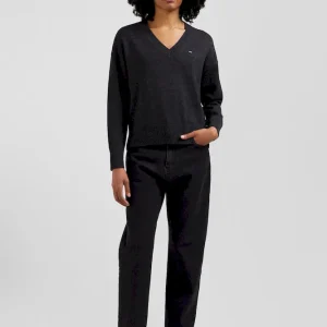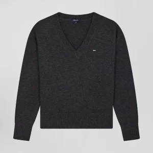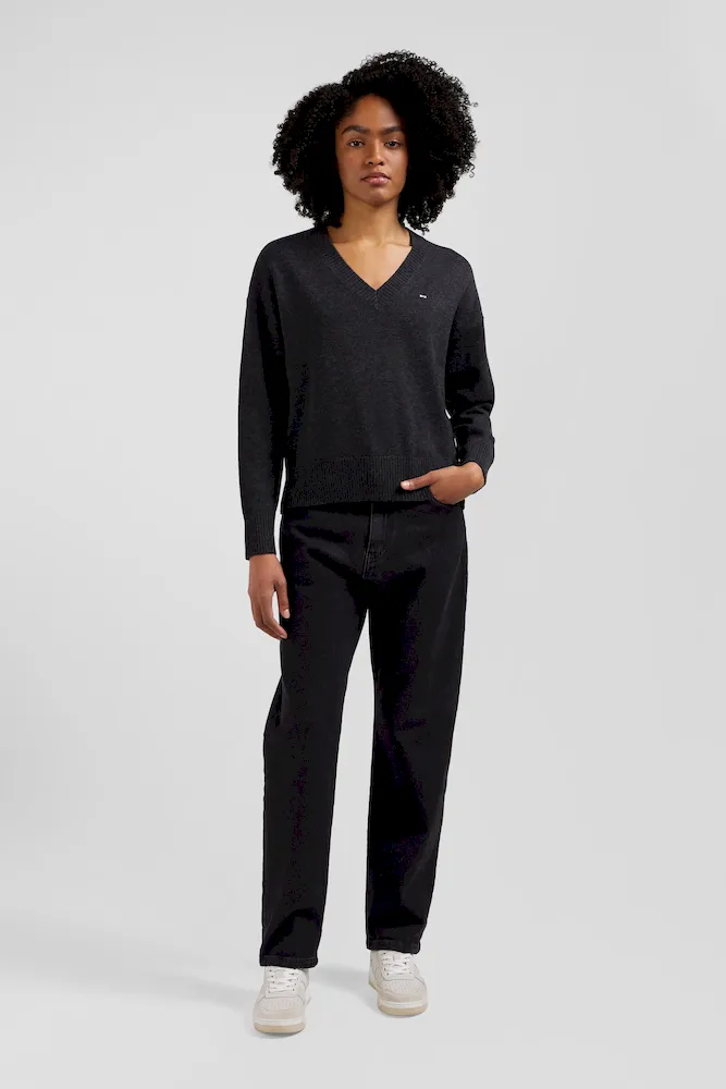 Notre pull col V est un intemporel du vestiaire féminin. Confectionné dans un mélange doux de laine et coton, des fibres naturelles aux multiples propriétés, ce pull offre une coupe Relaxed légèrement ample pour un confort optimal. Avec sa broderie discrète de notre logo nœud papillon, ce pull incarne l’élégance French Flair de notre Maison. Disponible en plusieurs coloris, il se marie aisément avec diverses tenues, idéal pour une allure chic au quotidien.