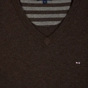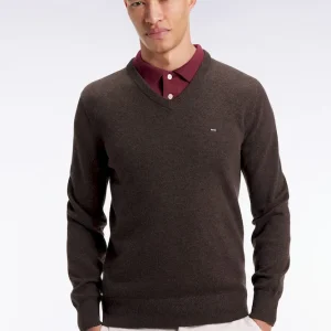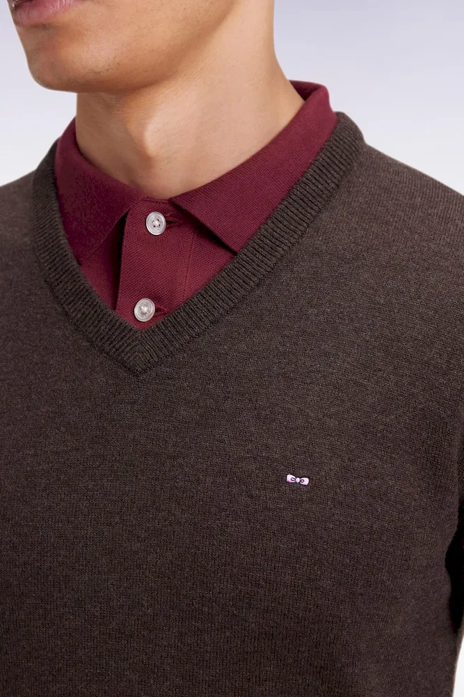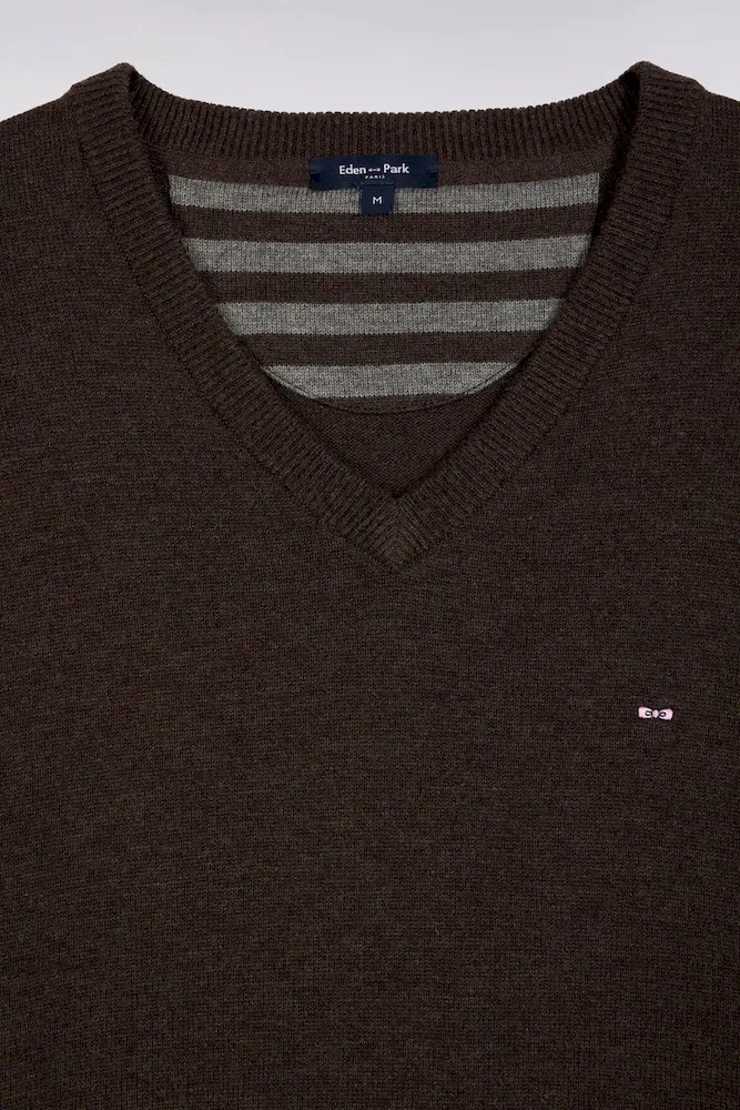 Cet élégant pull col V en laine et coton mélangés reprend la coupe droite confortable et polyvalente de notre pull classique décliné dans plusieurs propositions se distinguant par leur encolure. Ce modèle se pare de notre emblématique broderie nœud papillon sur la poitrine et d’une demi-lune intérieure à rayures rugby. Parfait pour dynamiser une silhouette avec une touche de couleur maîtrisée grâce au large choix de coloris proposés ici