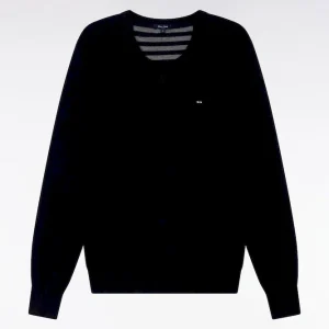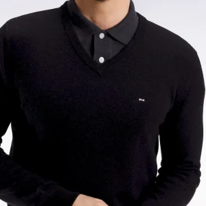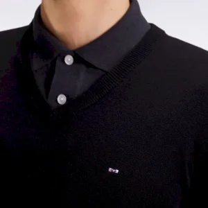 Cet élégant pull col V en laine et coton mélangés reprend la coupe droite confortable et polyvalente de notre pull classique décliné dans plusieurs propositions se distinguant par leur encolure. Ce modèle se pare de notre emblématique broderie nœud papillon sur la poitrine et d’une demi-lune intérieure à rayures rugby. Parfait pour dynamiser une silhouette avec une touche de couleur maîtrisée grâce au large choix de coloris proposés ici.