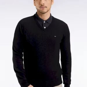 Cet élégant pull col V en laine et coton mélangés reprend la coupe droite confortable et polyvalente de notre pull classique décliné dans plusieurs propositions se distinguant par leur encolure. Ce modèle se pare de notre emblématique broderie nœud papillon sur la poitrine et d’une demi-lune intérieure à rayures rugby. Parfait pour dynamiser une silhouette avec une touche de couleur maîtrisée grâce au large choix de coloris proposés ici.