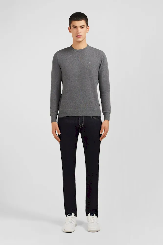 Classique mais infiniment chic, l’incontournable pull à col rond se taille une place de choix dans votre vestiaire de saison. Confectionné en jersey de coton, ce modèle promet douceur sans faille, confort parfait et élégance discrète. Portez-le version décontracté à même la peau, ou plus habillée sur une chemise unie.