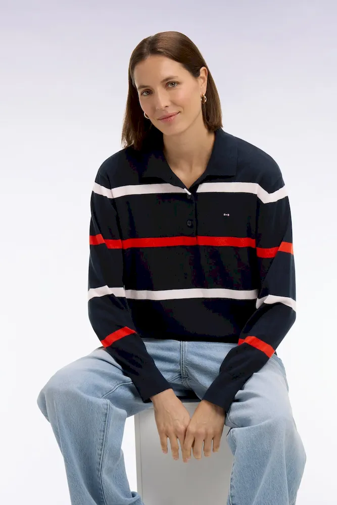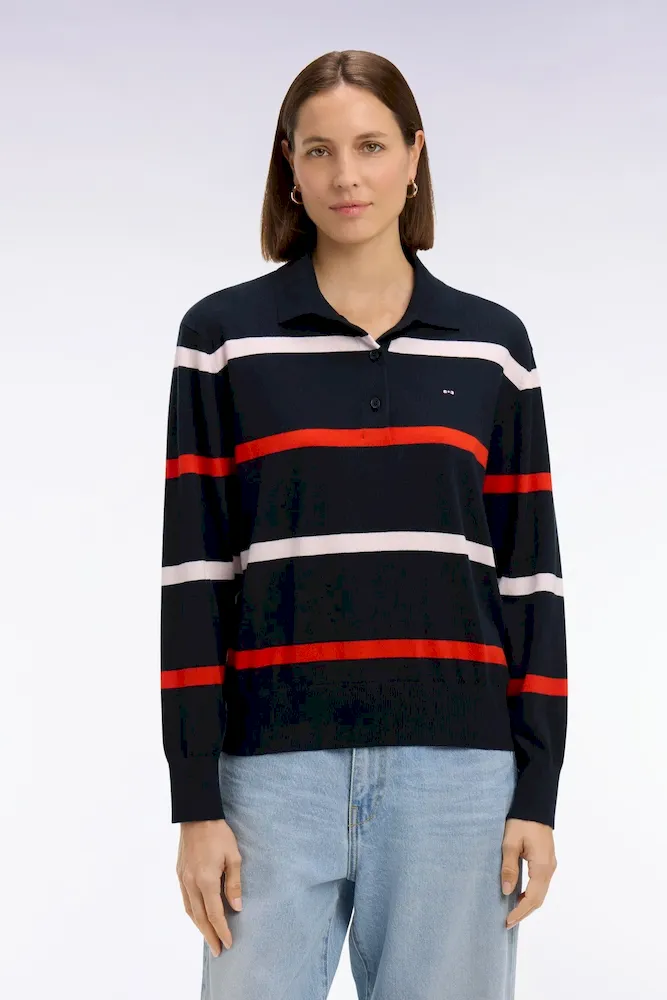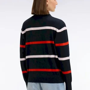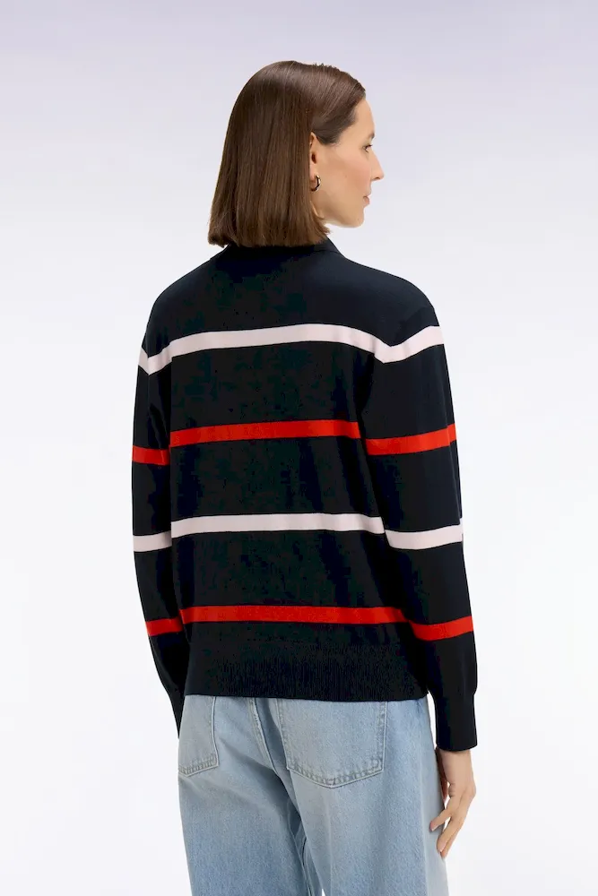 Pull maillot rayé en coton et soie mélangés marine