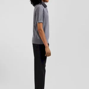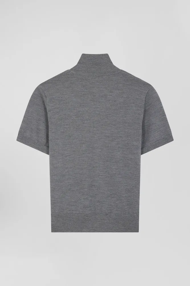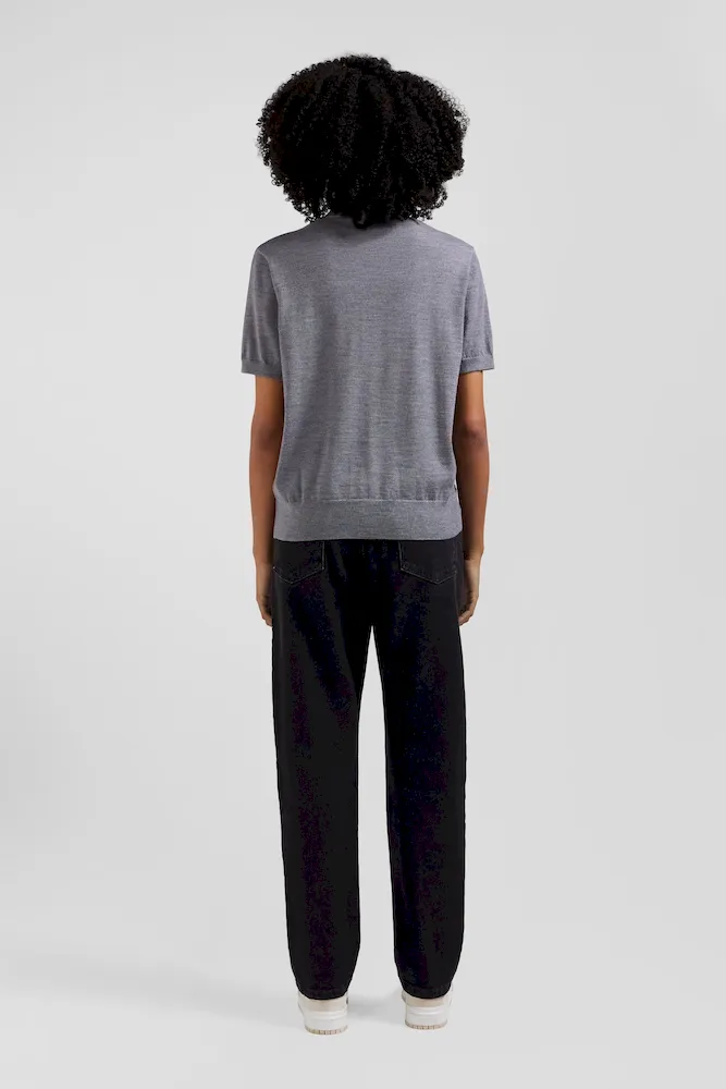 Ce pull pour femme à manches courtes et col polo confectionné en laine adopte une coupe Regular droite, alliant confort et élégance. Les boutons rugby ovales siglés ajoutent une touche distinctive à cette pièce intemporelle. Disponible en marine, noir, et trois nuances de gris, ce pull polyvalent est parfait pour un look chic décontracté ou plus professionnel au gré de vos associations. Portez-le avec une jupe ou un jean pour varier les styles .