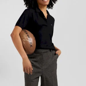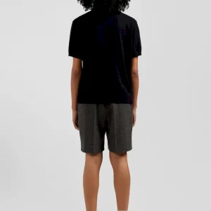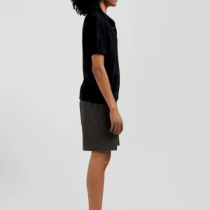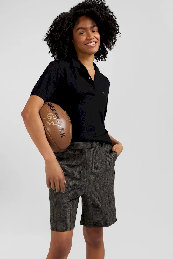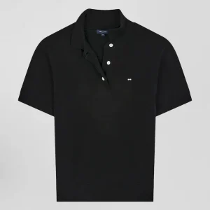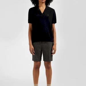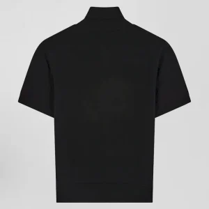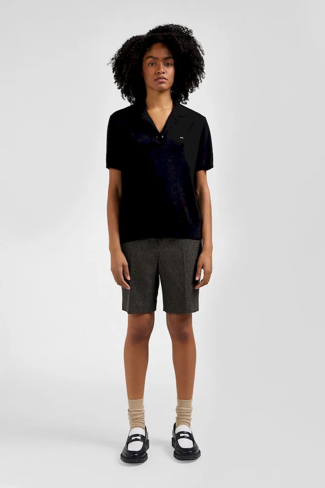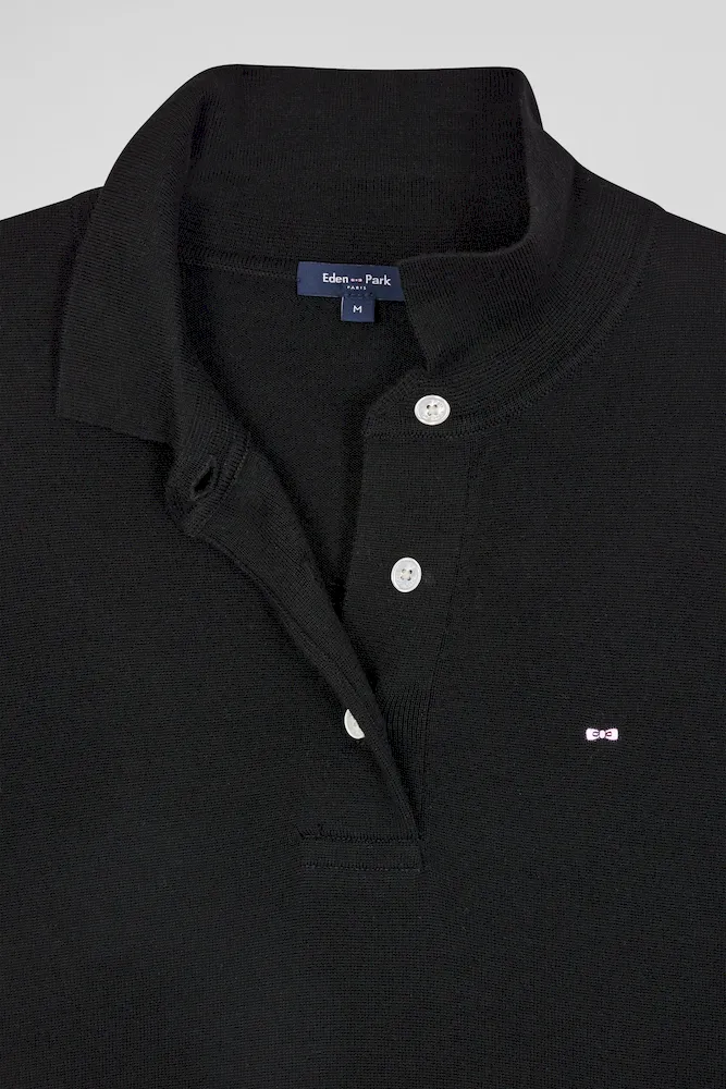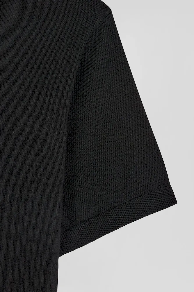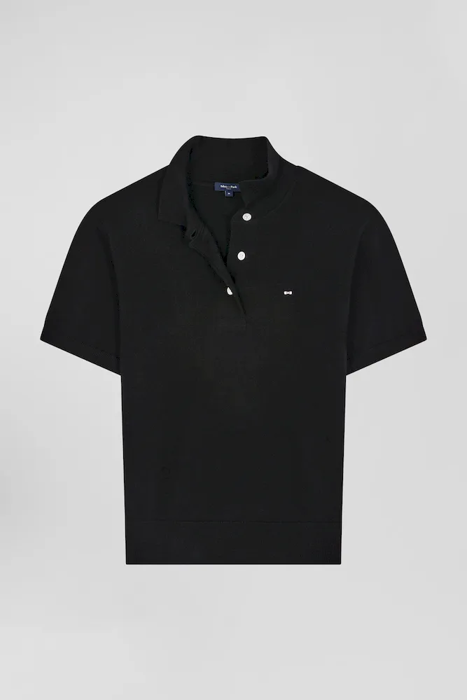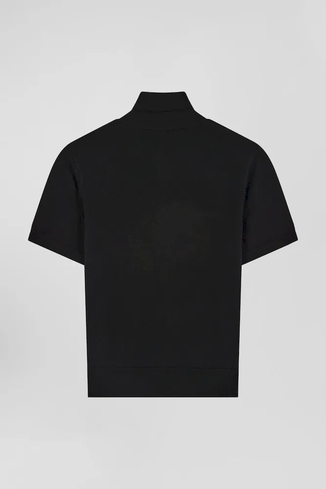 Pull manches courtes à col polo en laine noir coupe Regular