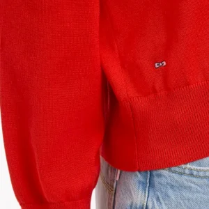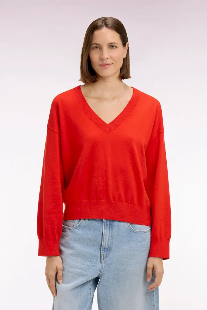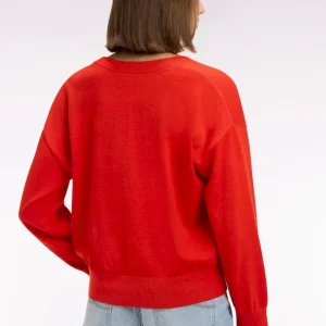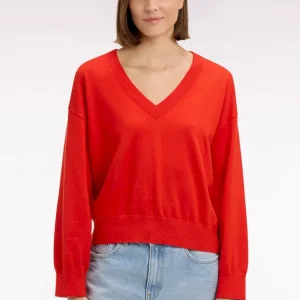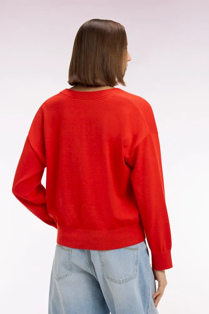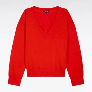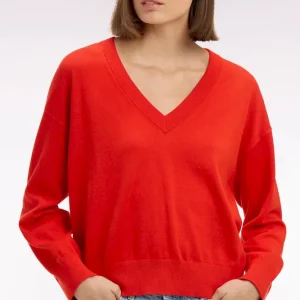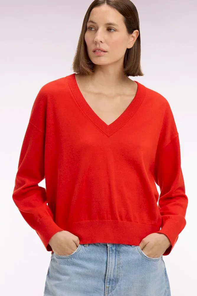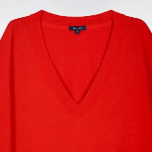 Pull-over à col V en coton rouge coupe oversized