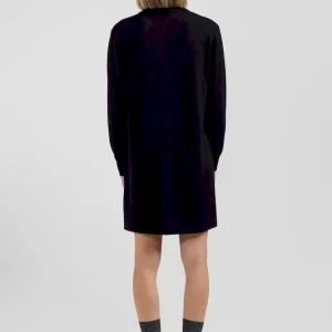 Adoptez une allure élégante avec notre robe col maillot en laine marine, simplement ornée de notre broderie nœud papillon rose sur la poitrine. Cette pièce chic et confortable à la fois offre une silhouette sophistiquée qui se marie parfaitement avec des bottes pour un look hivernal raffiné en soirée ou des baskets pour une touche plus décontractée tout au long de la journée. Idéale pour toutes occasions, cette robe versatile est un must-have pour votre vestiaire.