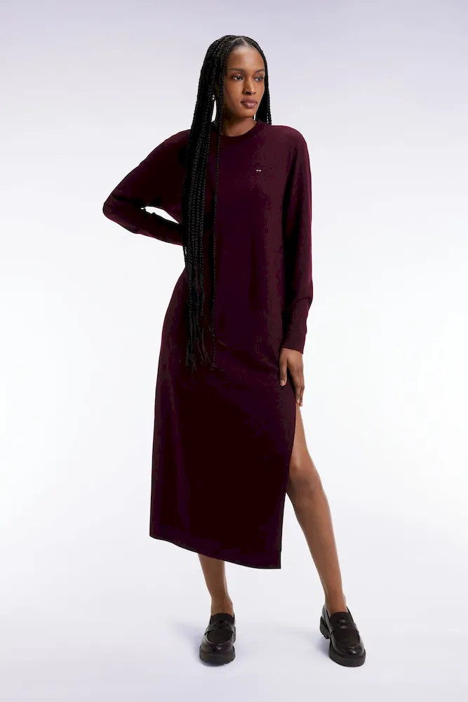 Classique du vestiaire féminin, la robe tube en maille s’offre ici dans une laine mérinos marine ou bordeaux pour un porté doux et chaud toute la journée. Sobrement ornée de notre broderie nœud papillon, cette robe automne-hiver accompagne toutes vos envies, des silhouettes les plus élégantes aux tenues décontractées. Son col rond épuré renforce l’allure intemporelle et raffinée de ce modèle polyvalent.