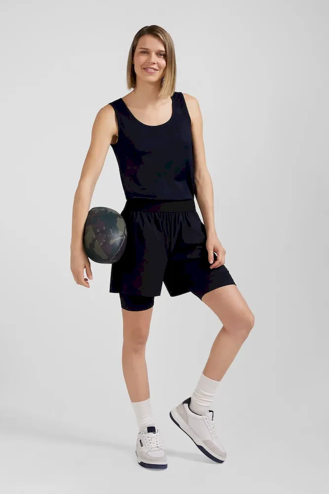 Ce short de sport marine est une pièce incontournable du vestiaire athlétique féminin. Idéal pour une multitude d’activités sportives ou pour un look décontracté, ce short femme intègre une sérigraphie distinctive en bas de jambe, ajoutant une touche d’originalité et de style. Léger et respirant, ce short de sport bleu marine est parfait pour les entraînements intenses ou les journées ensoleillées, offrant à la fois fonctionnalité et élégance. Portez-le avec son débardeur assorti ou avec le T-shirt de sport aux manches rayées issu de la même collection capsule exclusivement proposée sur notre site.