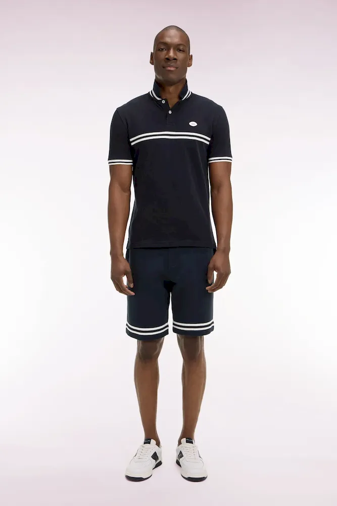 Alliance de confort et de style, ce short homme en molleton de coton doux s’inspire du vestiaire sportif en l’adaptant à la vie urbaine. Sa ceinture élastiquée à cordon de serrage uni assure un maintien idéal tandis que des finitions athlétiques, ruban rayé tricoté en bordure de jambe et badge rugby en gomme sur la poche arrière signent cet essentiel décontracté. Polo, tee-shirt et sweatshirt ont été développés par nos ateliers avec la même exigence pour un style sans compromis.