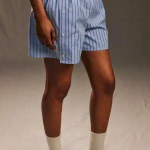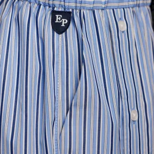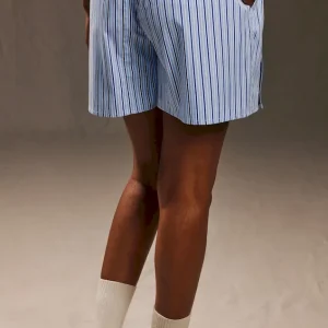 Short upcyclé en coton rayé ciel et blanc Pap’Atelier