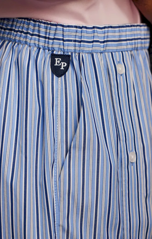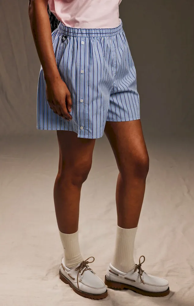 Short upcyclé en coton rayé ciel et blanc Pap'Atelier