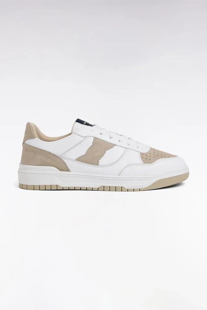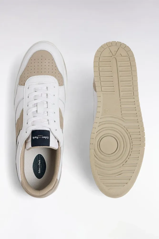Cette paire de basket basse joue sur un subtil contraste de matières en associant le cuir lisse blanc et le cuir suédé de couleur beige pour une silhouette à la fois moderne et élégante. Les empiècements en cuir suédé et leur découpe rappelant notre emblème, le nœud papillon, apportent du relief et une touche authentique, tandis que la semelle structurée assure confort et stabilité au quotidien. Déclinées en deux coloris, ces sneakers s’adaptent facilement à différents styles, du jean décontracté au chino plus habillé. Une paire polyvalente, pensée pour enrichir le vestiaire masculin.