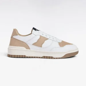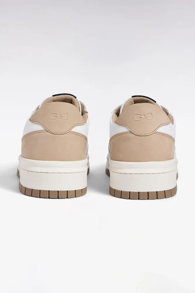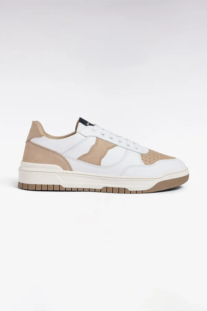 Inspirée de lignes athlétiques, ces sneakers basses revisitent les codes Eden Park dans un jeu de matières nobles. L’empeigne alterne cuir lisse blanc et empiècements en cuir suédé beige ou gris, pour un contraste tout en finesse. La semelle crantée rappelle les baskets vintage tout en assurant confort et maintien. Un modèle qui conjugue élégance sportive et style affirmé, à porter en ville comme en week-end