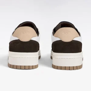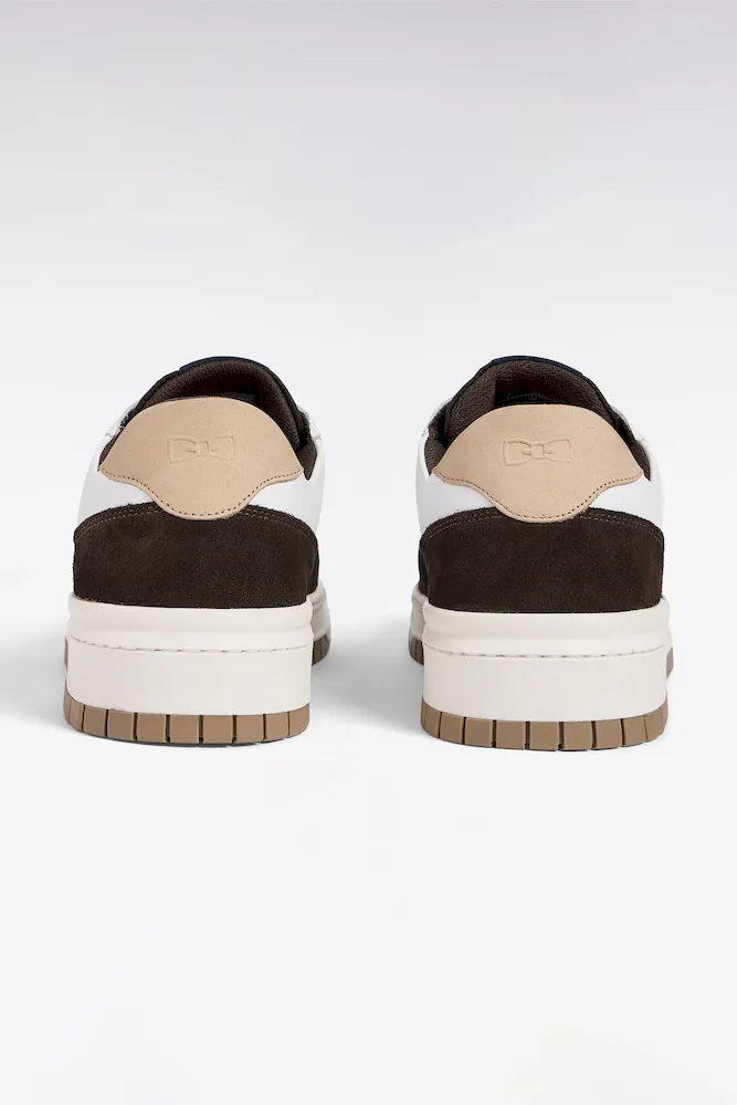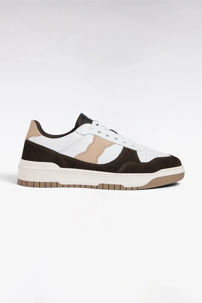 Sneakers bimatières en cuir lisse blanc et cuir suédé marron