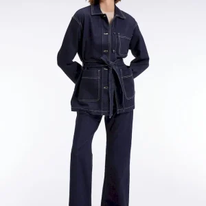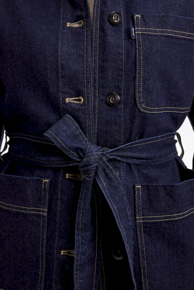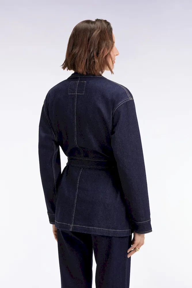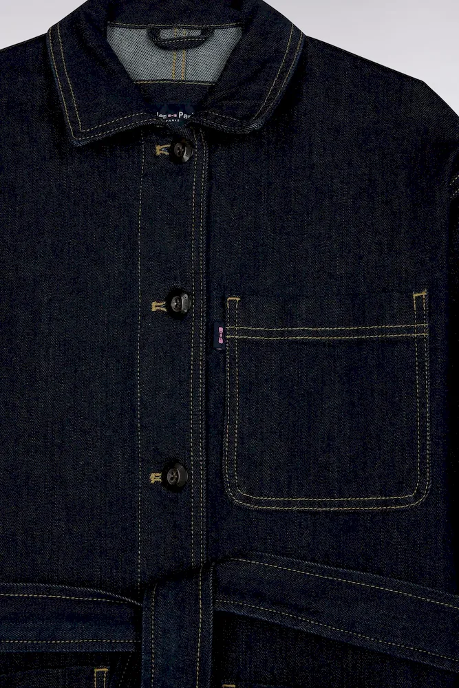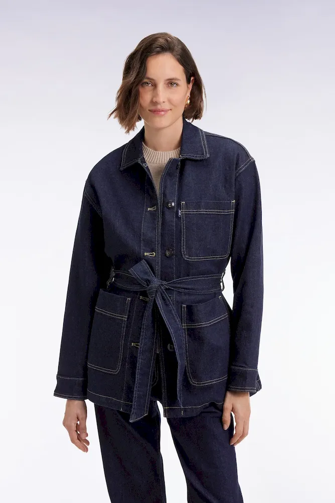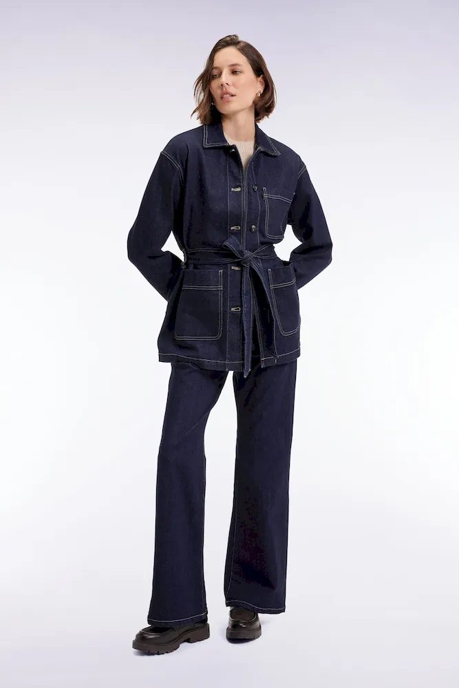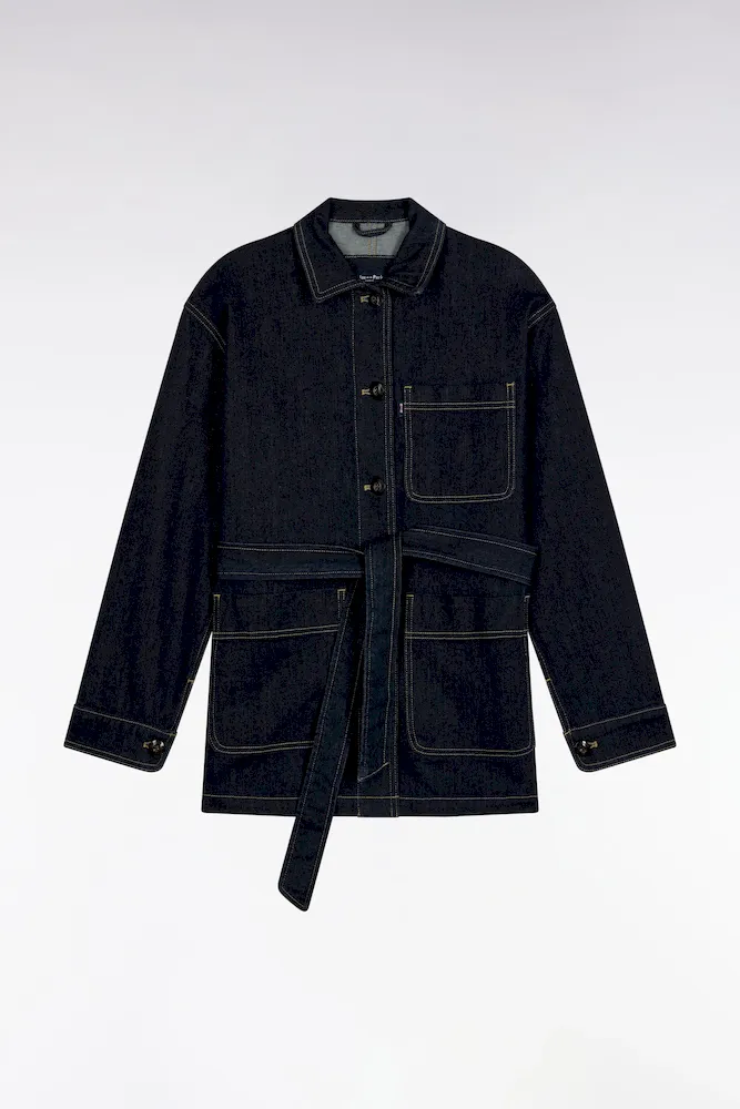 Conçue dans une toile denim brute, cette surchemise oversized ceinturée revendique une allure affirmée et moderne. Portée à même la peau, en veste légère ou en total look avec son jean assorti, elle multiplie les options de style sans jamais perdre son esprit cool et structuré mis en valeur par ses trois poches plaquées et sa patte de boutonnage