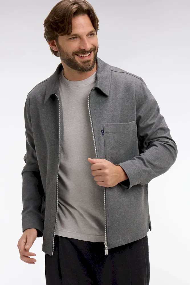 Cette surchemise zippée allie confort et élégance décontractée. Sa matière en coton stretch et sa coupe droite offrent une allure moderne et facile à porter.