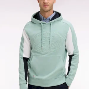 Sweatshirt à capuche en molleton coton vert d’eau brodé