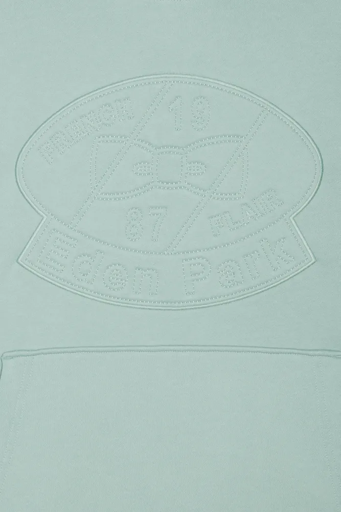 Sweatshirt à capuche en molleton coton vert d'eau brodé