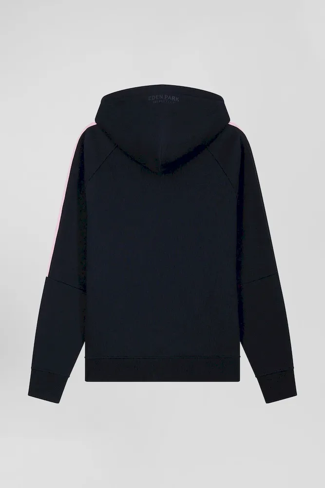 Conçu en doux molleton doux, ce sweatshirt à capuche propose un style graphique mis en valeur par ses cordons de serrage siglés Eden Park et le dos de sa capuche portant notre devise French Flair, invitation à s’amuser avec les codes de l’élégance décontractée. Ses finitions soignées apportent une touche d’élégance discrète à ce classique sportif réinventé.