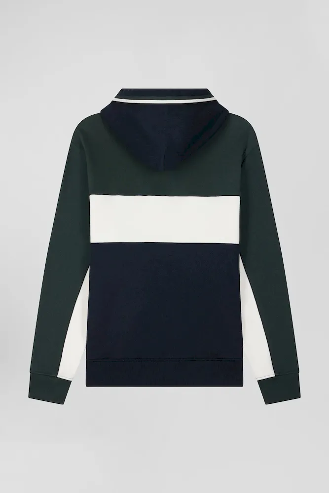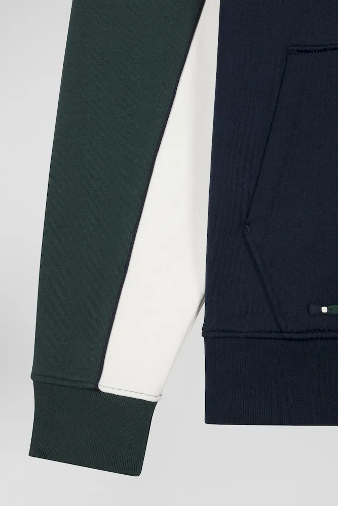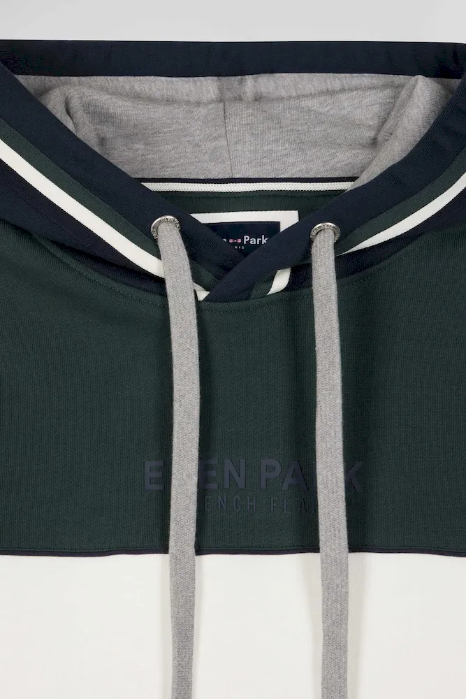 Optez pour notre sweatshirt à capuche tricolore, une pièce maîtresse pour tout amateur de mode. Confectionné en molleton gratté, il offre une douceur incomparable. Un passepoil élégant souligne les découpes des manches, tandis que le lettrage Eden Park French Flair affirme son identité. Un ruban tricoté appliqué en contour de la capuche ajoute une touche de raffinement à ce hoodie, fusionnant parfaitement confort et style.