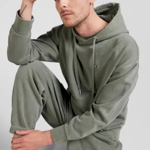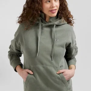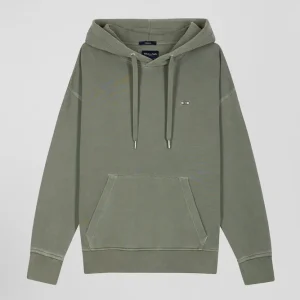 Sweatshirt à capuche unisexe en molleton coton kaki surteint coupe Oversized