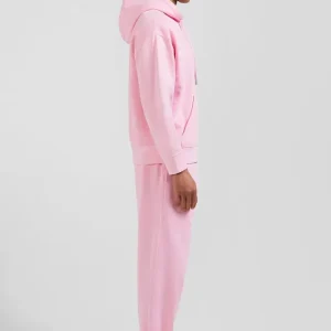 Sweatshirt à capuche unisexe en molleton coton rose surteint coupe Oversized