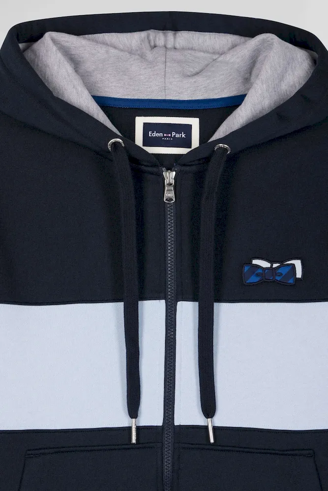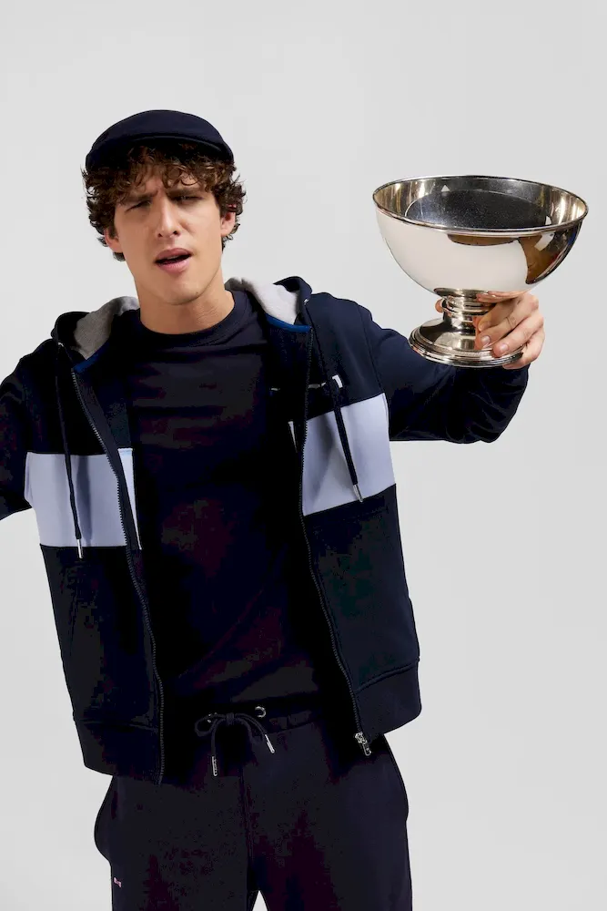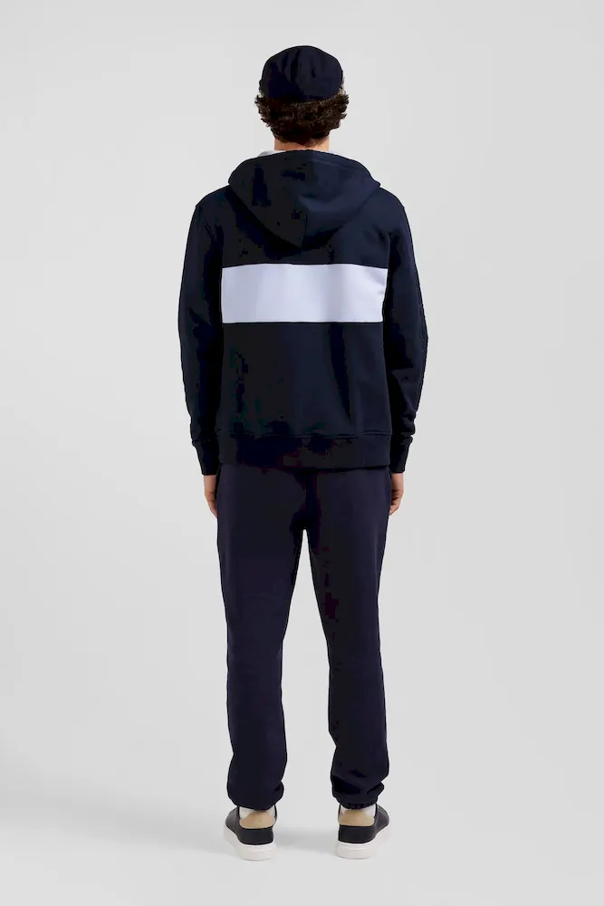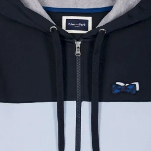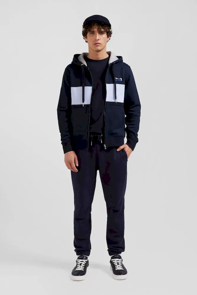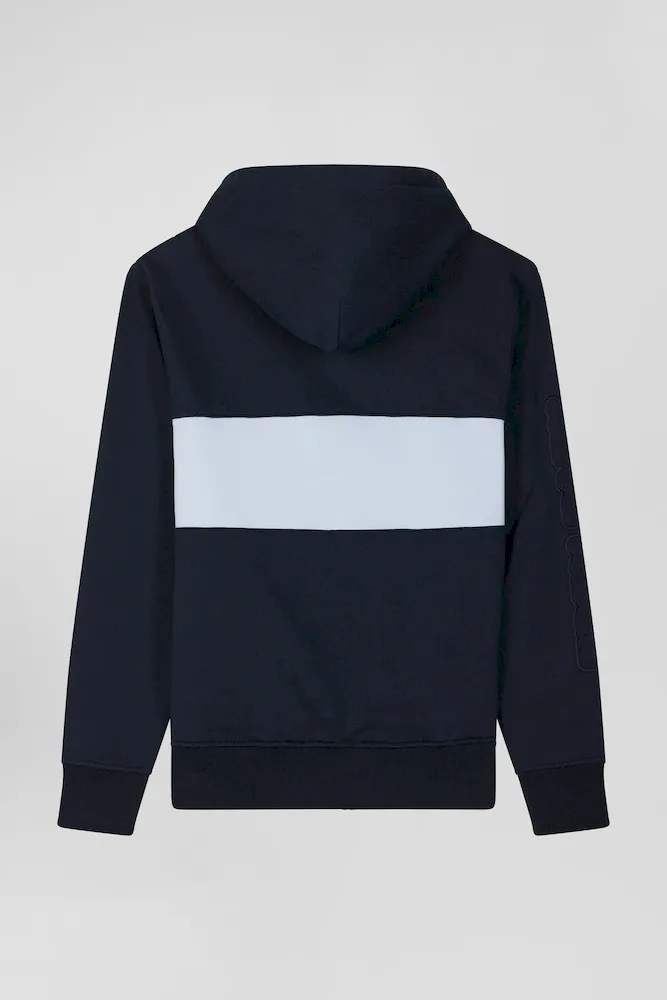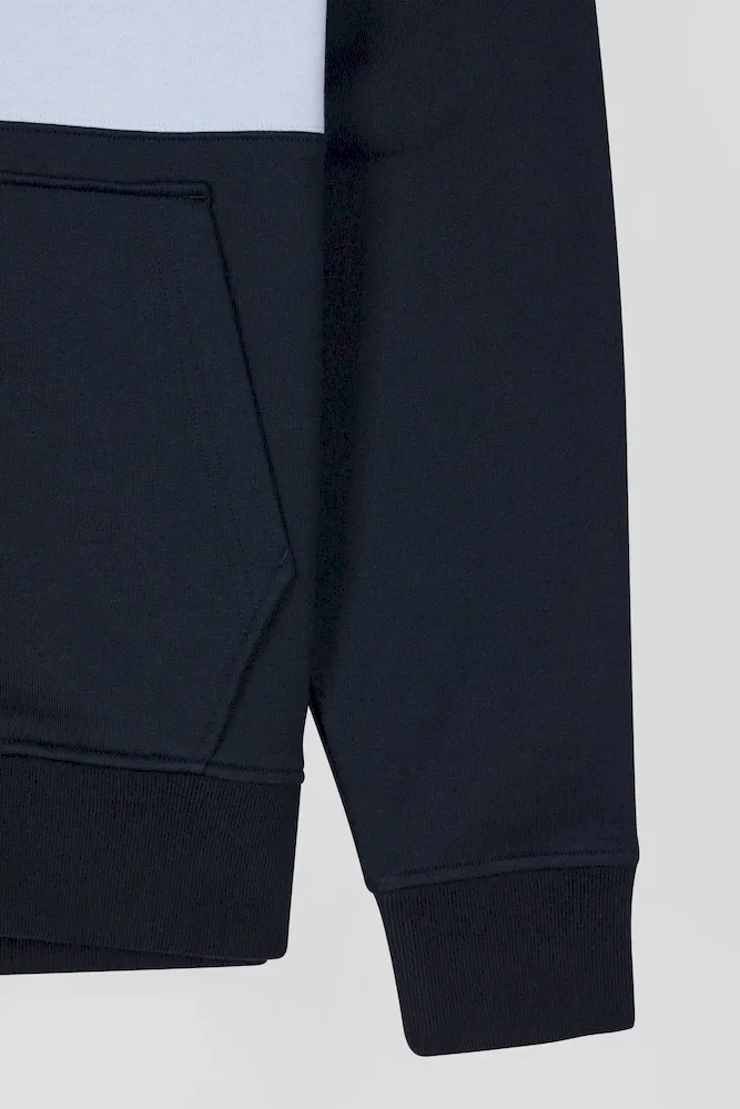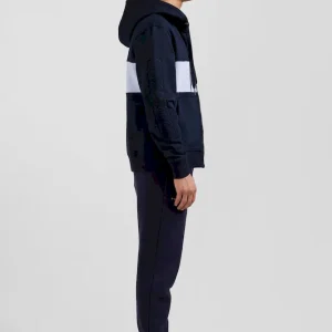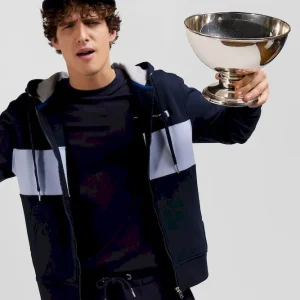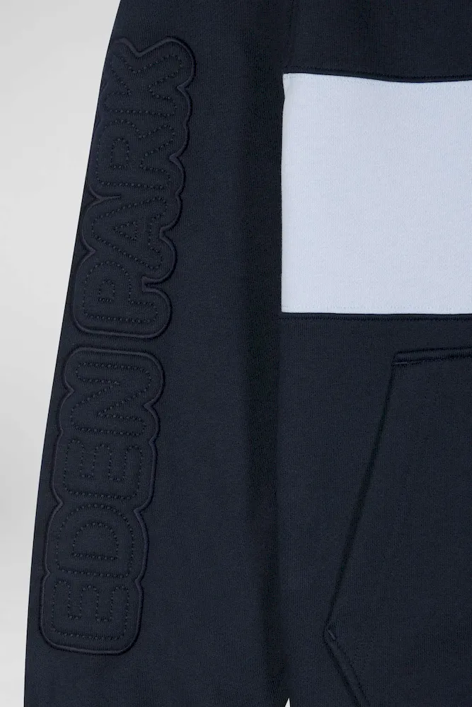 Ce sweatshirt à capuche zippé en molleton gratté combine confort et style avec sa bande poitrine originale et sa broderie matelassée sur la manche. L’intérieur gris chiné de la capuche apporte une touche contrastée, complétée par des finitions métalliques aux cordons de réglage de sa capuche et une bande de propreté en jersey coloré pour une allure contemporaine.