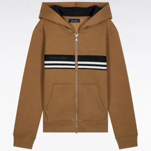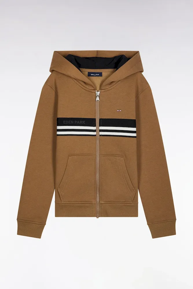 Sweatshirt à capuche zippé en molleton mélangé camel