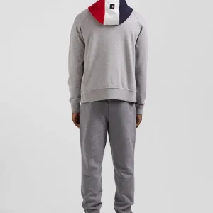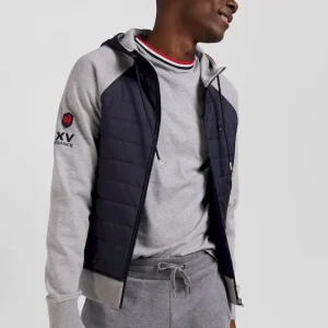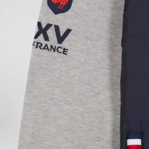 Sweatshirt à capuche zippé XV de France en coton mélangé et parmenture gris coupe Regular